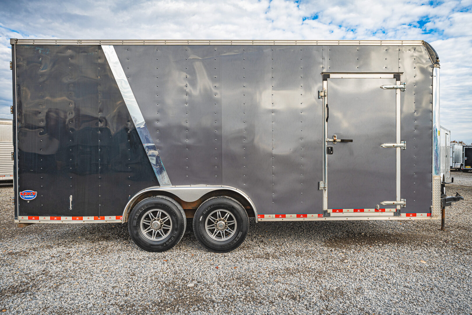 View Inventory: https://leonardtrailers.com/inventory/45214 Stock # 45214   2020 United UXT 8.5’ x 20’ x 8’ Tandem Axle Enclosed Trailer This high-quality 2020 United UXT enclosed trailer offers durability and functionality for a variety of hauling needs. Built with a robust steel frame and finished with a sleek two-tone grey and black aluminum exterior, this trailer combines strength with a professional appearance. Key Features: Dimensions: 8.5’ wide x 20’ long x 8’ high Axles: Tandem 7,000 lb torsion axles for a smoother ride and increased load capacity Construction: Steel frame with a one-piece aluminum roof for maximum durability Exterior: Two-tone aluminum skin (grey/black) with stone guard protection on the front Entry Points: Side access man door and double rear swing doors for easy loading/unloading Interior: Double-layered flooring for added strength E-track system on interior side walls for secure cargo management 12-volt interior lighting for visibility during low light conditions Lighting: LED exterior lighting for enhanced visibility and safety Wheels & Tires: Aluminum rims with 16” tires, includes spare tire This trailer is ideal for contractors, motorsports, or general cargo transport. Built to last and designed for convenience, it’s ready for work or play.   We offer outstanding financing options, accept trades, and can arrange nationwide NO HASSLE delivery! Inquire today for more information! (888) 333-6613 **We believe these specifications to be accurate. Any discrepancies are unintentional. Please verify information with a sales associate prior to purchase.** Stock Number:45214