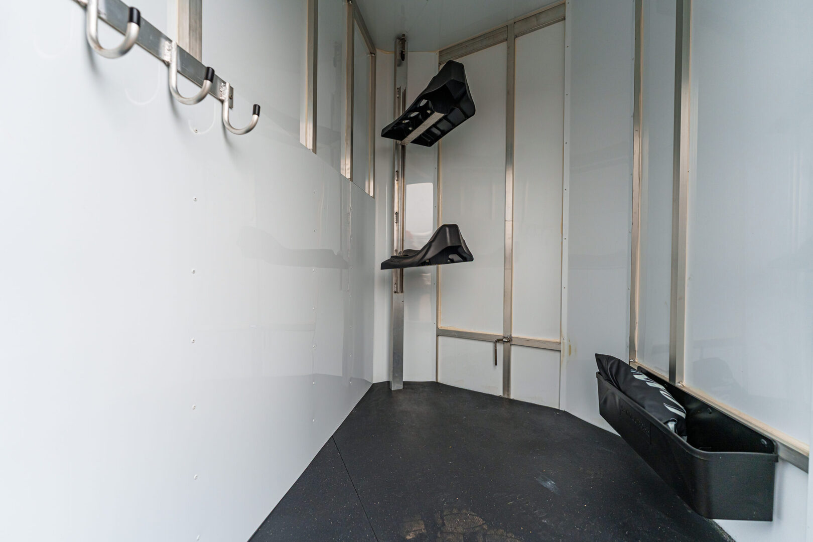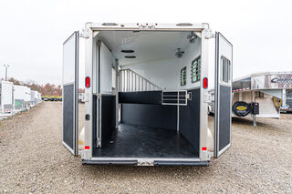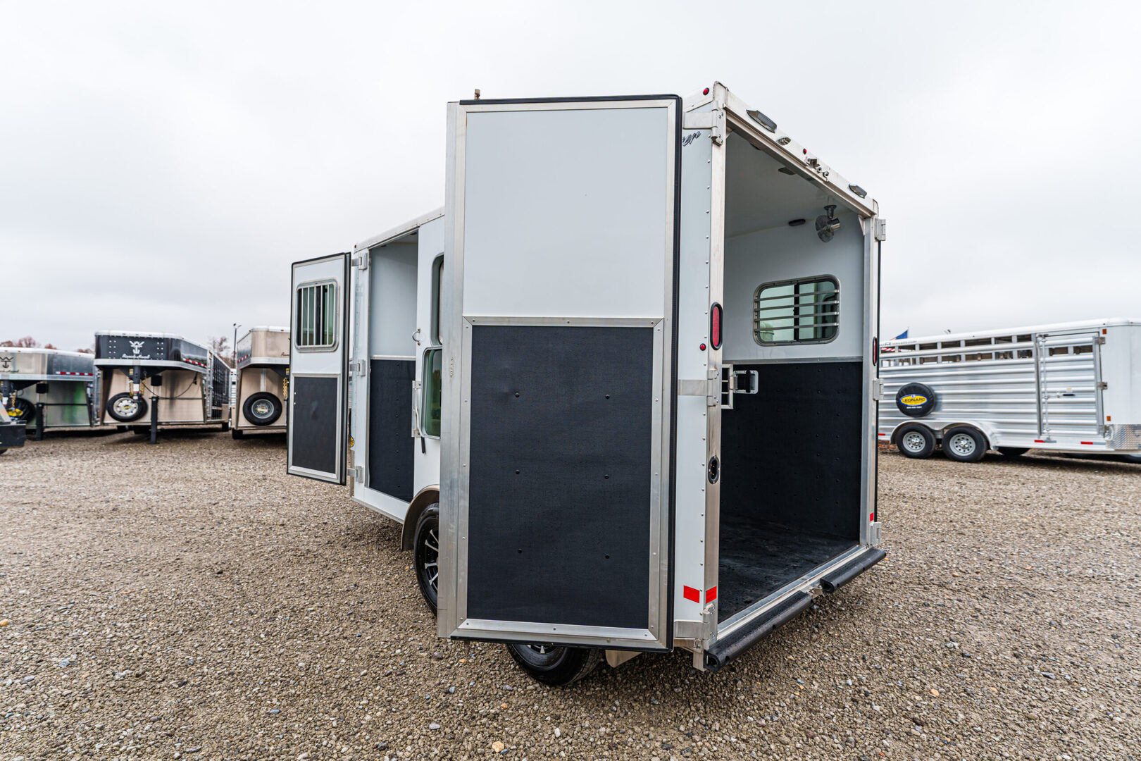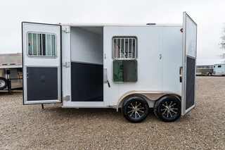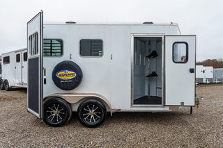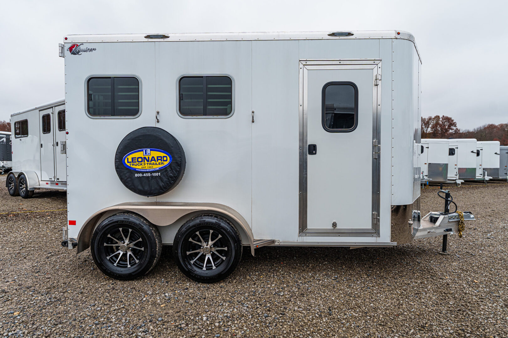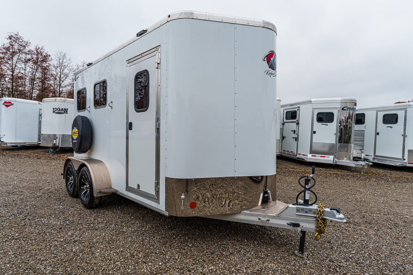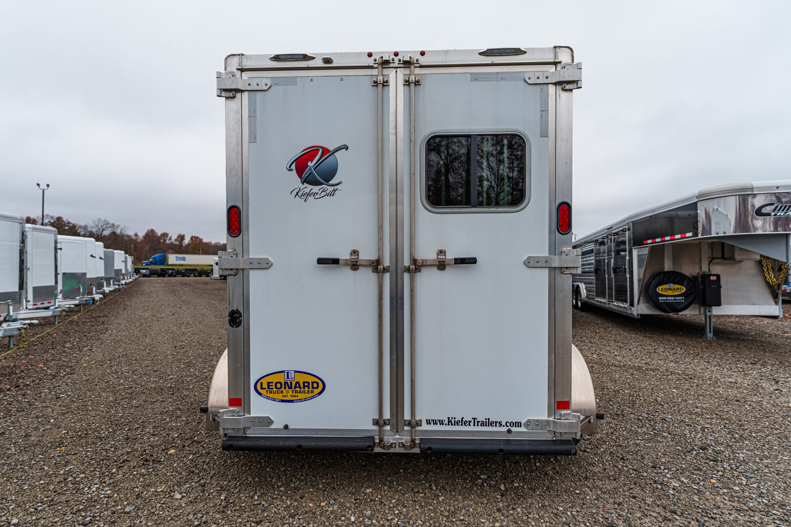 View Inventory: https://leonardtrailers.com/inventory/45225 Stock# 45225 Used 2025 Kiefer Manufacturing  KRUSIER Gooseneck Horse Trailer  General Information Edition: XT SS Coupler Size: 2 5/16 Adjustable: Yes Roof: Aluminum Primary Color: White Length: 14’ 1” Width: 6’ 9” Height: 7’ 4” Horse Area Horse #: 2 Type: Slant Options: Mats Vents Lights Rubber Lining:Kick Wall & Rear Door Escape Type:1 Full Walk Out Type: Rear Collapsible Contents: Saddle Racks Hooks Dressing Room: Size: 4’-0” Options:  Windows  Camper Door  Saddle Rack Location  Door / Gate Type: Double Rear Doors Other Details GVW: 7000 Axle Size: 5200 Tire Size: 225/75R15C # of Brakes: 2 Jacks: Single Dual Type: Hydraulic Spare: Yes Ride Type: Spring We offer outstanding financing options, accept trades, and can arrange nationwide NO HASSLE delivery! Inquire today for more information! (888) 333-6613 **We believe these specifications to be accurate. Any discrepancies are unintentional. Please verify information with a sales associate prior to purchase.** Stock Number:45225
