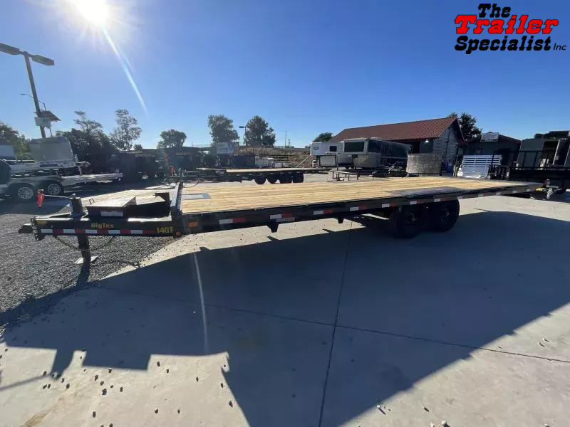 2026 Big Tex 14OT Tilt Deck Over Equipment Trailer: Heavy-Duty Performance *** Get ready for the New 2026 Big Tex 14OT-26, a heavy-duty 102” x 26’ tilt deck over equipment trailer built for stability and easy loading. With a 14,000-lb GVW, this trailer is engineered to haul your toughest low-profile equipment. Key Features & Design The Big Tex 14OT is designed with a scissor-style hydraulic hoist, which offers greater load stability and energy efficiency compared to single-ram systems. It also requires less maintenance than dual-ram setups. Loading and unloading are made smooth and simple thanks to the rear diamond plate knife edge and collapsible bumper, providing a seamless transition for low-profile machinery. *** Specifications at a Glance * Model: 14OT-26 * GVW (Gross Vehicle Weight): 14,000 lbs * Empty Weight: 5,343 lbs * Deck Dimensions: 102” wide x 26’ long * Frame: Rugged 8” I-Beam (13# on 26’ model) with an integral tongue * Axles: (2) 7,000-lb Quick Lubricating Axles with Electric Brakes * Coupler (Bumper Pull): Adjustable Cast 2-5/16” Demco EZ Latch (18,000# rating) * Tires: ST235/80 R-16 Load Range E Radials * Floor: 2” Treated Pine or Douglas Fir *** Hydraulic and Electrical System This trailer is built for reliable, self-contained operation: * Self-Contained Electric/Hydraulic Scissor Hoist: Features power-up/power-down functionality. * Battery: 12V Interstate Deep Cycle Battery. * Charging: Includes a 110V On-Board Battery Charger (5 Amp). * Safety & Security: Lockable pump and battery box, complete break-a-way system with a Zip break-a-way cable, and a sealed modular wiring harness. Additional Standard Equipment * Jack: 12,000# Top Wind Drop Leg Jack * Tie Downs: 6” x 2” x 1/8” rectangular tubing side rails with stake pockets and a rubrail on both sides. * Lighting: Full L.E.D. D.O.T. lighting package. * Extra Features: Recessed winch plate at the front of the deck and a spare tire mount in the tongue area. *** *Please Note: While we work to ensure complete accuracy, all specifications should be confirmed with one of our sales representatives.* Are you interested in learning more about the financing options available for this trailer?