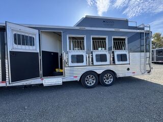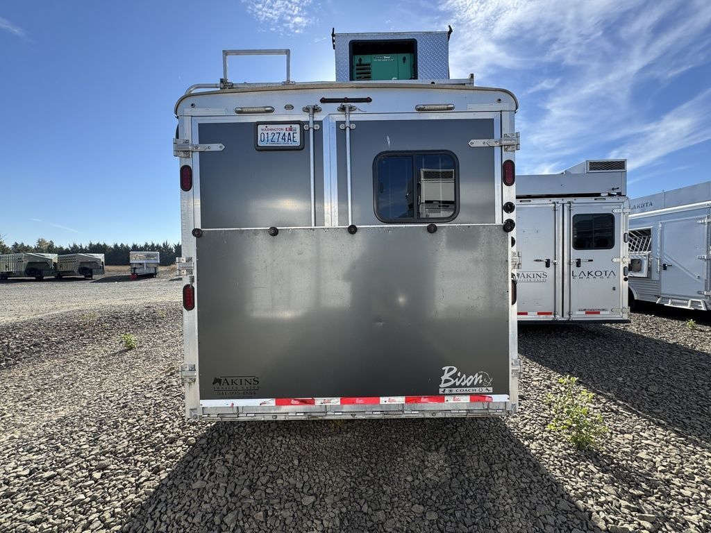 2016 Bison Premiere 8417 The luxurious PREMIERE by BISON is full of stunning features! The spacious interior includes a large flush-floor slide-out room.The spacious PREMIERE interiors features a full flush-floor slide-out, elegant window treatments, residential light fixtures, and more. You’ll love the overall functionality in the PREMIERE when preparing meals or entertaining guests.Features may include:8’ Wide 7’6” TallBolt on Torsion Axles mounted on axle carrierAll Aluminum StructureInsulated Aluminum WallsInterlocking Extruded Aluminum Plank Flooring48” Vortex Lined Kick PlateFully Collapsible Tack WallPadded Aluminum Air Flow Dividers w/ Gate SpringsEscape Door Pass thru DoorHeavy Duty Drop Feed Panel DoorsMolded Saddle rack, Brush Box, Bridle Hooks60/40 Rear DoorsSeamless aluminum with drip railLED Exterior and Interior LightsLighted grab HandleFlip-up Aluminum Camper Step3-way Vent (1) per stallHeavy Duty Rubber Stall Matting2 Rear 2 Side Load LightsSTS Wheel LinersPremiere Graphic PackageExterior water Spigot3-way Horse Area LightHorse Fans Spray Port with Hose and Quick DisconnectPolished STS Nose WrapBison Conversion StandardsFlush Floor Slide-out w/ topper AwningClassy Entertainment Center w/ LED TVHardwood Wind Walnut or Spiced Maple Cabinetry Vinyl Valances w/ Auto Roller ShadesClassic Residential Hardware and AccentsModena or Sienna Solid Surface CountertopsResidential Single Handle Oil Rubbed Faucets with STS SinksWood Grain Linoleum FlooringBison Exclusive “Visionary” SofaSoft Touch CeilingResidential Plush CarpetResidential Shower faucet w/ Hand WandAlmond Porcelain Toilet/ Porcelain SinkLED Interior Lighting2- way Led Porch / Insect LightTwo Deep Cycle Battery with Shut OffTwo Propane Tank with RegulatorCable InletOn Demand Fresh water SystemLarge Capacity Holding TanksRV RefrigeratorGlass Shower DoorDeluxe Mattress with Bedspread & Pillow Shams Please Note, this trailer is on consignment. Being Sold AS IS. All Horse Trailers, will be ran through our service department AFTER they are sold. Pickup & Delivery time is based on the service department’s schedule at the time of purchase. *Please review all features with a salesperson. We try our best, but sometimes features and dimensions get mislisted. Thank you!* Akins Trailer Sales541-995-4884* Located in Harrisburg, Oregon* Financing Available* Trade-Ins Considered www.akinstrailersales.com