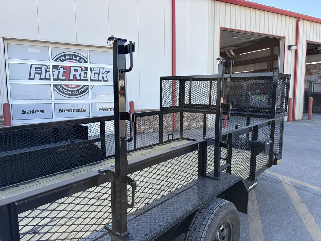 2 x 3.5K Axles Brakes on Rear ST20575R15 Tires 24in Expanded Metal Sides Front Tool Box Front Water Holder Front Tongue Basket H/D Spare Tire Mount 48in Spring Assist Ramp Gate Weed Eater Racks Stake Pockets w/ Cut Outs 4in Channel Wrapped Tongue 2in Coupler 7K Drop Leg Jack Treated Wood Floor Empty Weight 2,050lb G.V.W.R. 7,000lb Carrying Capacity 4,950lb