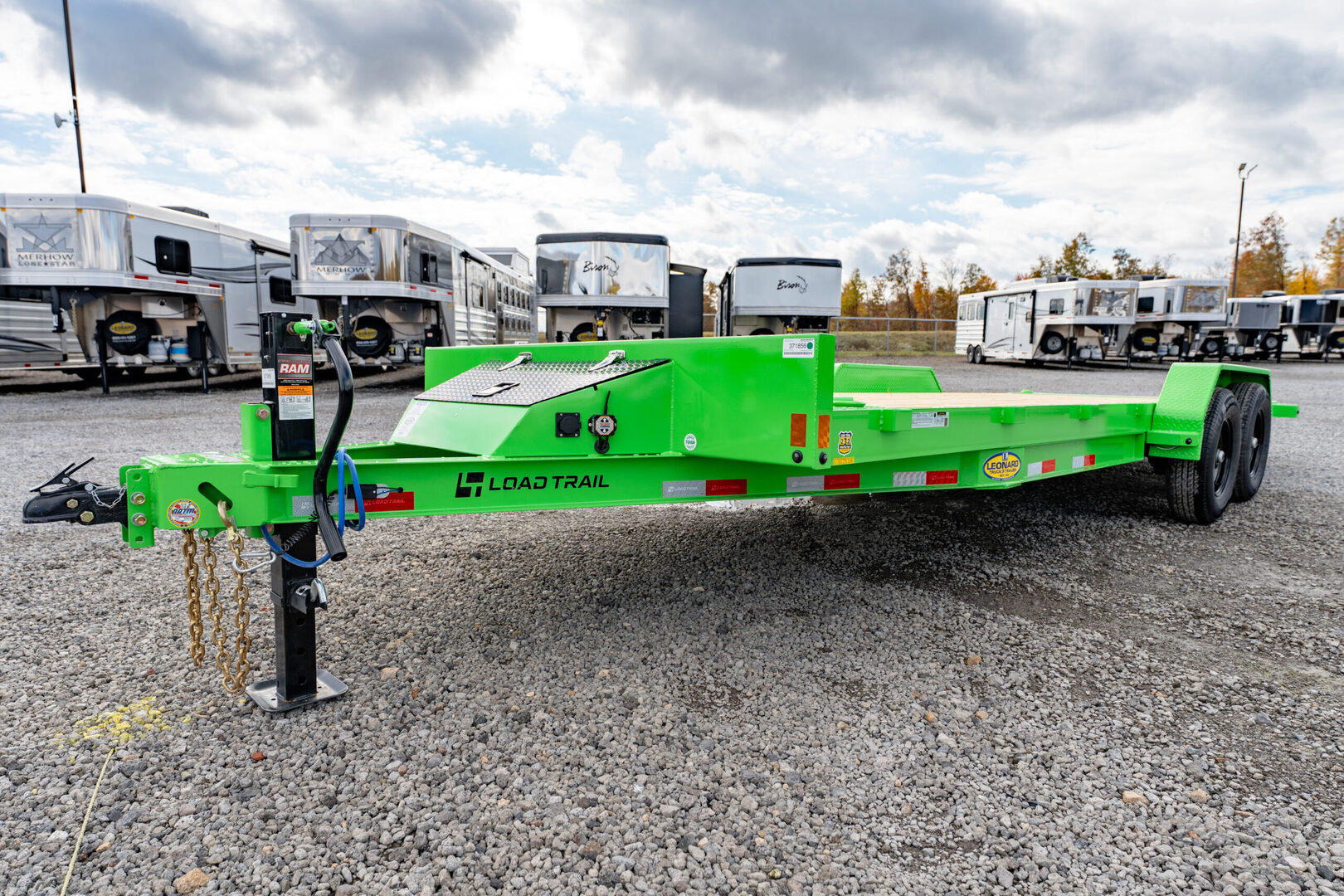 View Inventory: https://leonardtrailers.com/inventory/45235 Stock# 45235 New 2026 Load Trail TM8320072 Rapid Loader Tilt Deck Trailer Model: TM8322072 Warranty: 3yr- Structural 2yr-Comperhensive Trailer Specs: Frames: 6” Channel Frame Axle Options: 2 - 7,000 Lb Dexter Spring Axles (2 Elec FSA Brakes) Tire Upgrades: ST235/80 R16 LRE 10 Ply. (BLACK WHEELS) Couplers: Coupler 2-5/16” Adjustable (6 HOLE) Fenders: Diamond Plate Fenders (weld-on) Cross Members: 16” Cross-Members Jacks: Jack Spring Loaded Drop Leg 1-10K Floor/Stationary Decks: Power Up Full Deck (Treated Pine) (w/TUFF Wireless Remote) Lights: Lights LED (w/Cold Weather Harness) D-Rings: 4 - D-Rings 4” Weld On Front Toolbox: Sport Box Winch: 1/4” Plate for Winch Rub Rail: 2” - Rub Rail Solar Panel Charger: 1 - Solar Panel Charger Spare Tire Mount (universal): Spare Tire Mount Colors: Kawasaki (w/Primer) Road Service Program: Road Service Program 833-278-3396 for Info.     We offer outstanding financing options, accept trades, and can arrange nationwide NO HASSLE delivery! Inquire today for more information! (888) 333-6613 **We believe these specifications to be accurate. Any discrepancies are unintentional. Please verify information with a sales associate prior to purchase.** Stock Number:45235