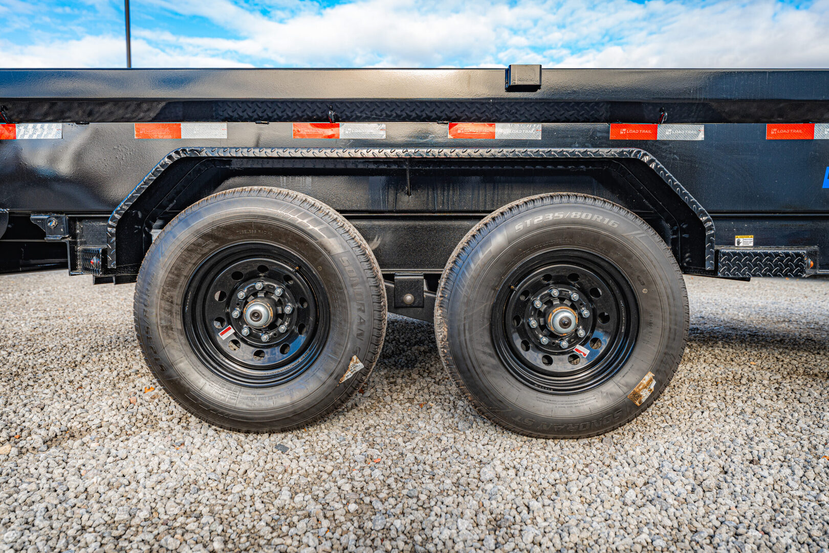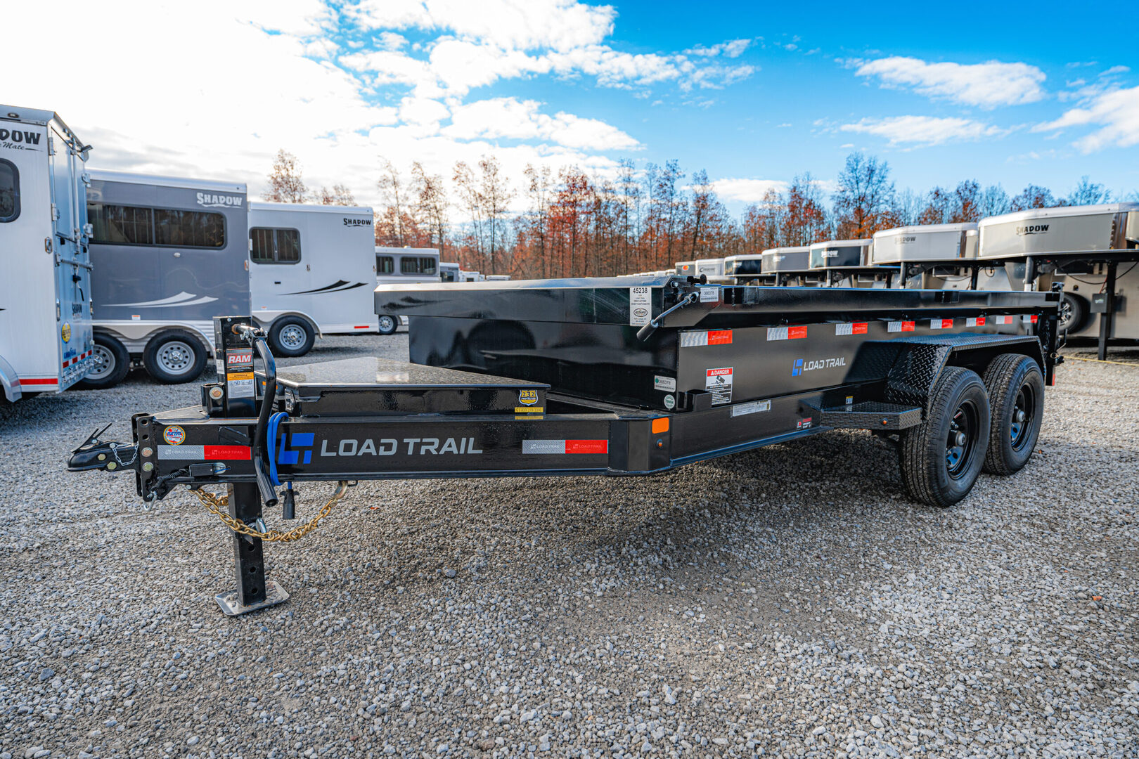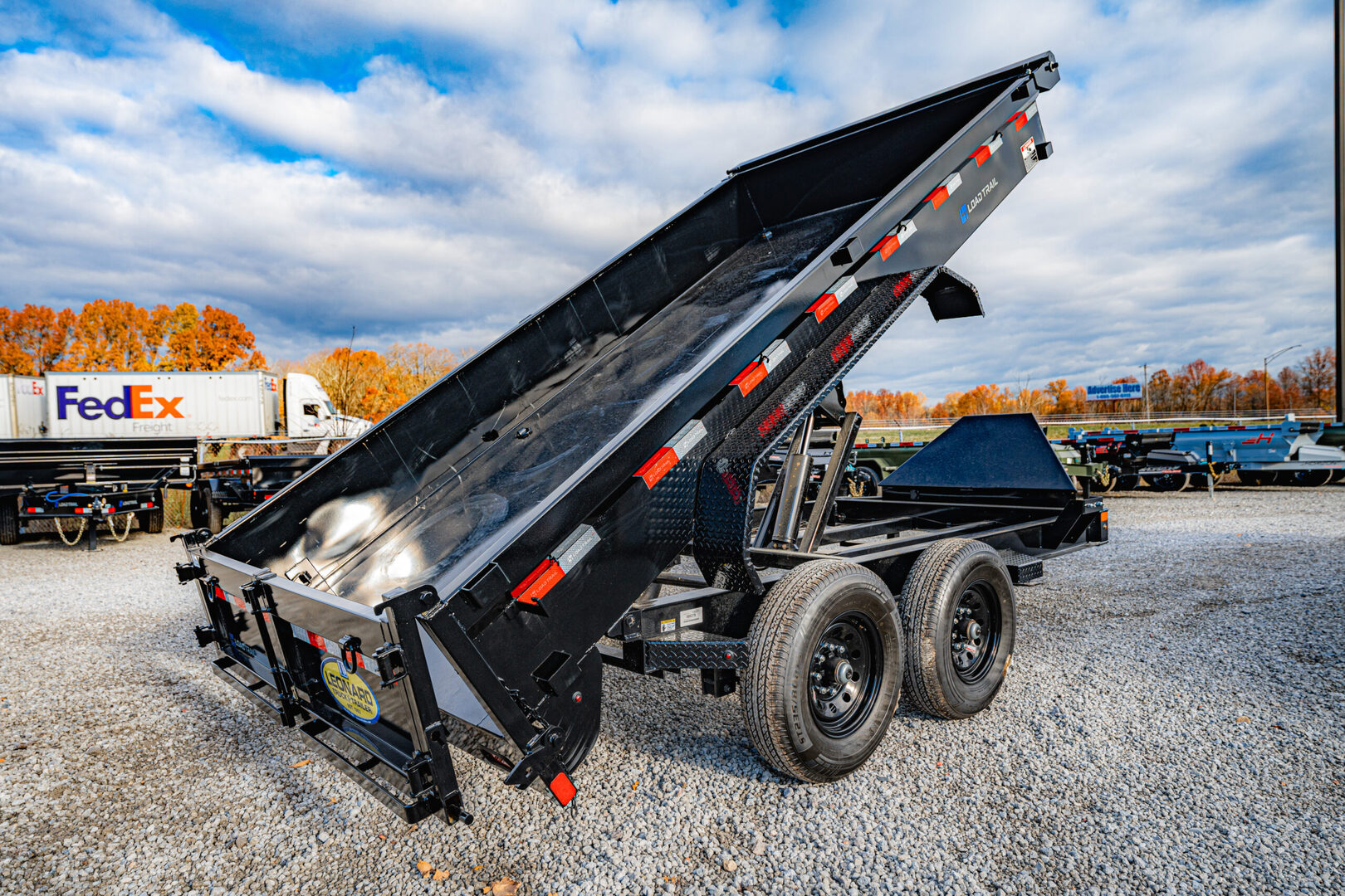 View Inventory: https://leonardtrailers.com/inventory/45238 Stock# 45238 New 2026 Load Trail DE8314072MX Dump Trailer Model:DE8314072MX Warranty: 3yr- Structural 2yr-Comperhensive Model: DE8314072MX Size: 83” x 14’ Tandem Axle Dump Specifications: Axle Options: 2 - 7,000 lb Dexter Spring Axles (2 Electric FSA Brakes) Tire Upgrades: ST235/80 R16 LRE 10 Ply (Black Wheels) Couplers: 2-5/16” Adjustable (6 Hole) Fenders: Diamond Plate Fenders (weld-on) Dump Sides: 18” Dump Sides with 18” 2-Way Gate Ramps: Rear Slide-In Ramps, 80” x 16” Jacks: Spring Loaded Drop Leg Jack, 10K Lights: LED Lights (with Cold Weather Harness) D-Rings: 6 Weld-On, 3” Front Toolbox: Front Tongue Mount (MAX-Box with Divider) Hydraulics: Scissor Hoist with Standard Pump Battery Charger: Standard Battery Wall Charger (5 Amp) Tarp Kit: Front Mount Tarp Kit Spare Tire Mount: Universal HD Spare Tire Mount Colors: Black (with Primer)   We offer outstanding financing options, accept trades, and can arrange nationwide NO HASSLE delivery! Inquire today for more information! (888) 333-6613 **We believe these specifications to be accurate. Any discrepancies are unintentional. Please verify information with a sales associate prior to purchase.** Stock Number:45238