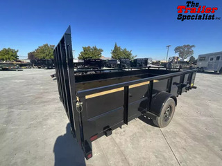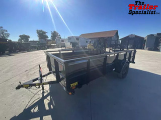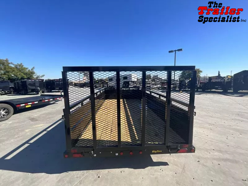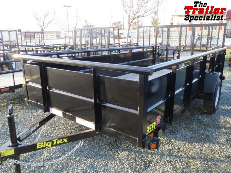 New Big Tex 35SV-14 6.5x14 Landscape Utility Trailer The 35SV Single Axle Vanguard Trailer from Big Tex comes with the pipe-top rail, higher sides and multiple width options, providing versatility to haul just about anything you need. Protect your cargo and trailer confidently with the 35SV. GVW: 2,995 LBS Empty Weight: 1,480 LBS Sparemount 4’ rampgate Standard Features: Axle: 3,500 quick lubricating axle with brake flanges Jack: 2,000 top wind- bolt-on Tire: ST205/75R-15 load range c Floor: 2” treated pine or Douglas fir Frame: 3” x 2” x 3/16” angle Sides: 24” tall v-crimpled steel panels Wheel: 15 x 5 black mod, 5 on 5 bolt pattern Finish: superior quality finish is applied for a highly decorative and protective finish Lights: LED DOT stop, tail, turn and clearance Tongue: 3” channel Coupler: 2” a-frame Fenders: 9” x 32” rolled formed with back GVWR: 2,995 Top rail: 2” X 2” squared tubing Elec plug: 4-way flat with loom Hitch type: bumper pull Suspension: multi-leaf spring Crossmembers: 3”X2”x3/16” angle Finish: steel is cleaned to ensure a professional, smooth finish Safety chains: 1/4” grd. 30 with safety latch hook GAWR: 2,995 THE 35SV ALSO COMES EQUIPPED WITH: * (4) Tie Down Loops Inside Bed * (4) Stake Pockets on Outside of Frame * Set Back Jack * Quick Lubricating Hubs * Premium Brand Axle * Durable Tubing Top Rail * Grommet Mount Sealed Lighting * L.E.D. Lighting Package * Protected Wiring * Radial Tires * Brake Flanges on Axle for Easy Brake Addition * Removable Sand Foot on Jack * A-Frame Channel Tongue * 29-3/8” Tall Sides w/ 24” V-Crimped Steel Panels Rims are BLACK , not white as shown in picture FINANCING is available! While we always strive for complete accuracy, please verify all specifications with a sales representative.
