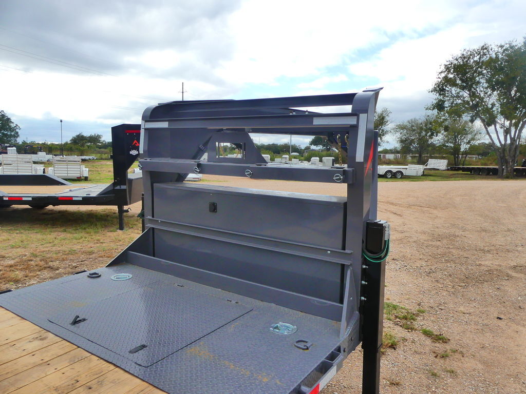 G7X - 24’ x 83” GN Gravity Tilt2-5/16” Ball 25,000 lbs Square Coupler 8” x 13 I-Beam Frame 3” Channel / 16” OC 16’ Tilt Bed: Gravity Up / Down Tilt Angle: 11° 2” Treated Lumber Deck 2 Hydraulic Jacks -10,000 lbs 6” Outer Deck Frame Rub Rail: 2” x 3/8” Flat Bar 3-7/8” x 1-13/16” (ID) Stake Pockets Chain Spool: 1 5/8” OD Spare Mount Front Tool Box: Between Risers 2 - Flush Mount D-Rings 4 - Weld on D-Rings Grade 50, One-Piece Gooseneck Chain Rack 3/16” Thread plate (Drive-Over) Fenders Winch Plate 3/8” G70 Safety Chains 4 - 18 Ply ST235/75R17.5 Tires Torsion Suspension 2 - 10,000 lbs Axles With Brakes Winch Assist Roller / Flow Valve 3M DOT Compliant Reflective Tape All Weather Wiring Harness Powder Coat Paint 5 Year Dexter Axle Warranty 3 Year Structural / 1 Year PaintThe Advertised Prices DO NOT Include: *Licensing* & TaxWe have over 200 trailers to choose from. Come in and see us at:6610 N I-35 Lacy Lakeview, TX 76705 (Exit 342B)Not in the great state of Texas? No Problem! We offer local and nation wide delivery.Store Hours:MON–FRI: 8:00 AM - 5:00 PMSATURDAY: 9:00 AM - 2:00 PMSUNDAY: ClosedRemember we handle all your Trailer Sales & Trailer Part Needs!!!Let us help you with servicing your trailer too!It is our pleasure to serve our community of Waco Texas and all of Central Texas!