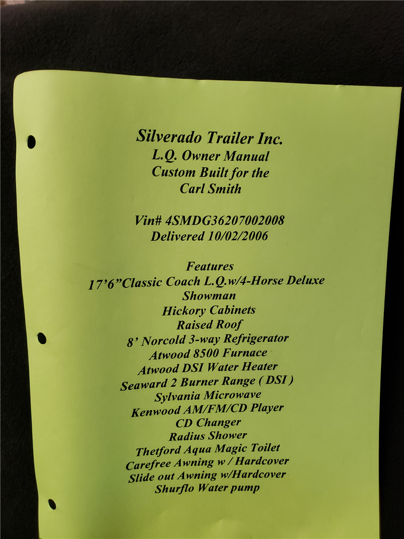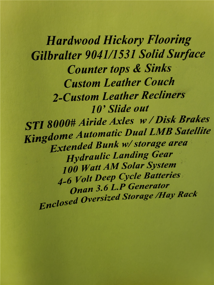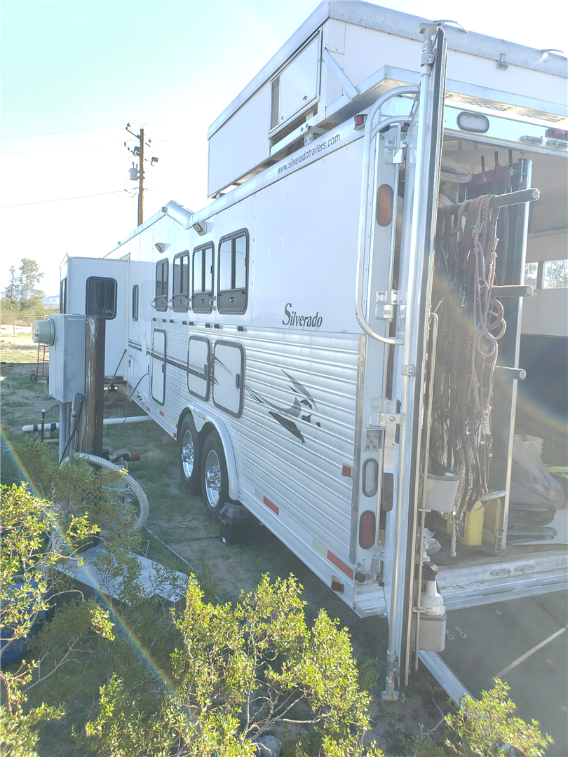 Custom built by Silverado in Oregon. 10K air ride axle, Ramp, Hay pod, extra water tanks, 18' shortwall with 10'slide out. 8' raised roof, stove, micro, TV, sat dish, AC. Many extra features. See photos of custom order. Clean title. smoke free. rust free. single owner.