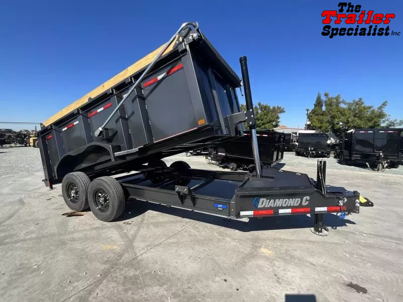 New 2026 Diamond C LPT207L14X82P4 Low Profile Telescopic Dump Trailer This Diamond C dump trailer comes loaded with premium upgrades and Pacesetter Edition enhancements: * TARP, 20’ HD, BLACK MESH W/ELECTRIC LONG ARM TARP SYSTEM * Axle, 2-7k drop axle, elecric brakes * Hydraulic Telescopic System: Power up, Gravity down * Sides: 44” tall, 10-gauge integral with the floor (L 14) for increased capacity. * Board Brackets w/boardsand raised front * Fender, 3/16 DIA plate, super heavy duty * Pacesetter Edition: Includes board brackets with boards and a raised front, plus super heavy-duty 3/16” diamond plate fenders. * Hydraulic Jack: Single 20K hydraulic jack for robust lifting. * SolarPulse Charging System: 7-watt system to keep your battery charged. * Gate: Standard 3-way dump gate for versatile unloading. * Ramps: 78” rear slide-in ramps (3x2 rectangular tube). * Bluetooth Wireless Controller: 4-button control for hydraulic jacks. * Tongue: Engineered with a heavy-duty V-tongue lid for added storage and protection. * Paint: Carbon Metallic Gray * Spare Tire: ST235/80R16 Radial 14-ply, 8-hole black. * Tie Downs: Four standard 5/8” D-rings. *** *Please note: While we always strive for complete accuracy, we recommend confirming all specifications with one of our sales representatives.*