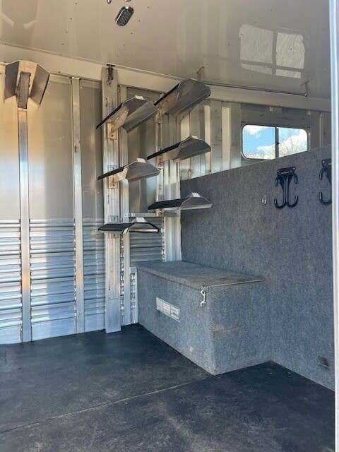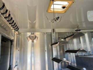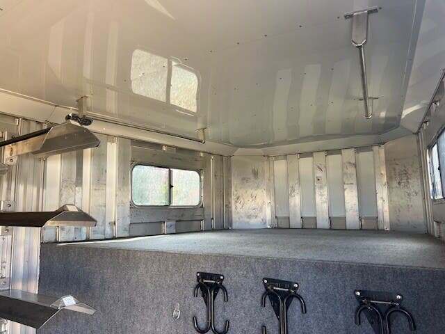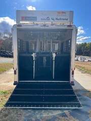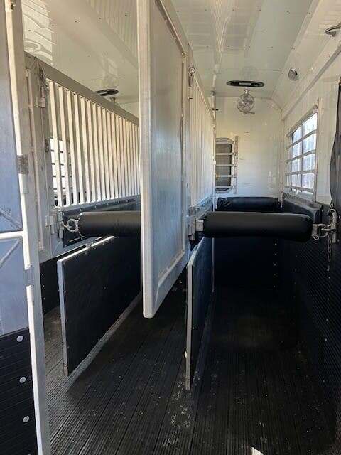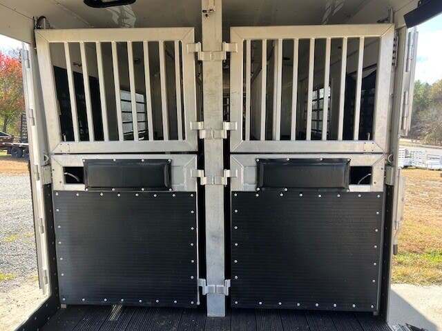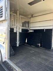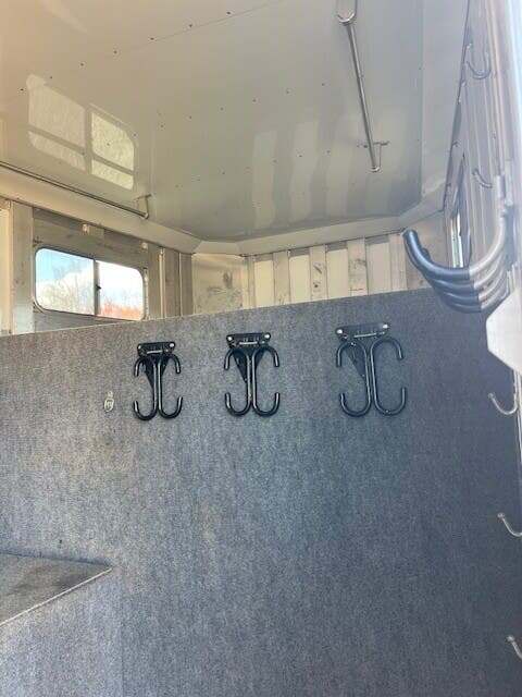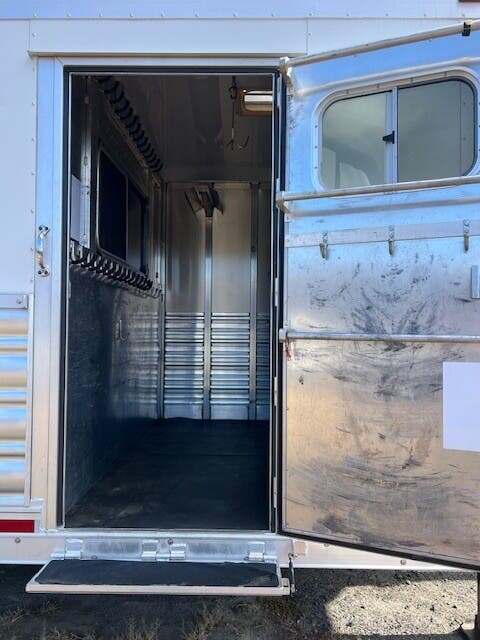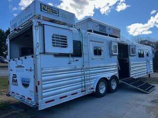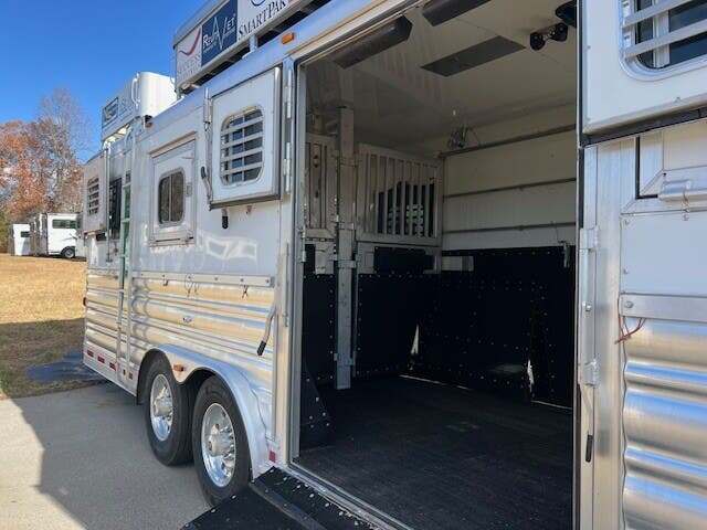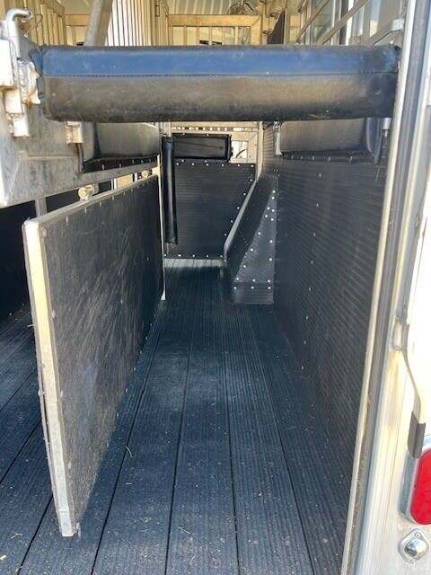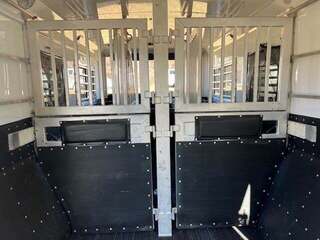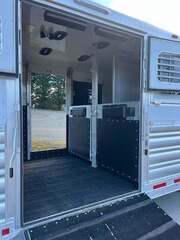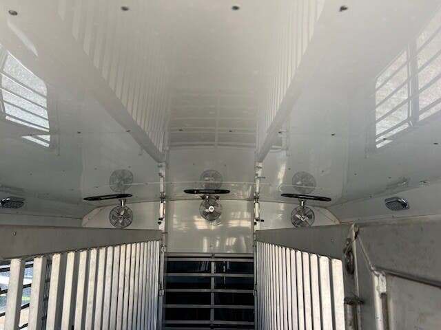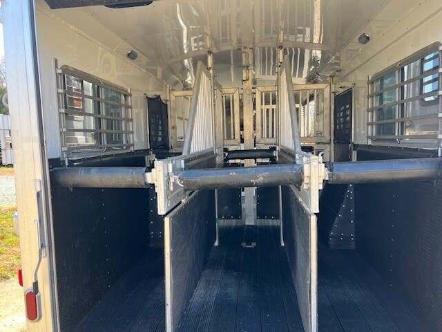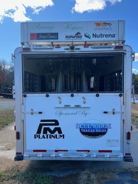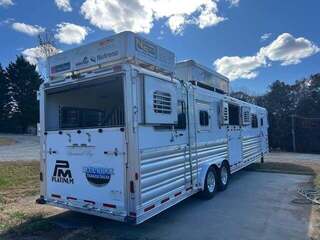 2018 Platinum Coach 6-7H H2H GN w/6’ Dress, 7’6”x8’, White, All Aluminum, 36’ Total Floor Length, 30’ Rumber Flooring in HA, 6’ Smooth Alum Plate in Dress w/Rubber Mats, 52” T Spring Loaded Full Width Rear Ramp w/Dutch Doors Above & (2) Long Loading Lights, Spring Loaded 57” W x 52” T Side Ramp w/Dutch Doors Above & Loading Light, (1) Escape Door w/Drop Down Window w/Bars & Light Above, Removable Dividers & Posts, Fully Lined & Removable Conversion Doors w/Half Door Options, Extra Settings for 4H Configuration, (4) Removable Stud Doors, (4) Drop Down Feed Doors w/Bars-2 on Each Side, Window w/Slider in Dress Wall, Fully Insulated, Fold Up Steps at Dress Door & Escape Door, Inside & Outside Ties, (5) LED Lights in HA, (12) Two Way Roof Vents, (5) 12V Fans in HA w/Switches at Rear & HA, (2) Cameras in HA, (6) Brackets/Bars to Hang Pads in HA, Outside Bridle Hooks on GN, Outside Tie Bars on Both Sides to Tie Horses, Window in Dress Door, Light Above Dress Door, (7) Saddle Racks-6 Removable & Adjustable, Bridle Racks, (3) Blanket Bars, (2) Clothes Bars, Numerous Hooks & Cleaning Hook, (3) Collapsible Riding Boot Holders, Carpeted Boot Box, (3) LED Lights & Vent in Dress, Water Tank on Roof w/Hose, Hay Pod on Roof, Dual Hydraulic Jack, 2 Mounted Spare Tires, GVWR 25000, Empty 10150, Carry 14850