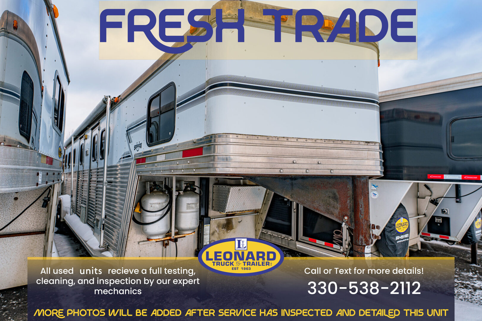 View Inventory: https://leonardtrailers.com/inventory/45245 Stock# 45245 Used 1995 SIDE KICK 3 Horse GN - LQ Trailer    General Information Construction: Steel frame with aluminum skin Coupler Size: 2 5/16” Roof: Aluminum Primary Color: Silver Length: 21’ Width: 7’ Height: 7’ Horse Area Type: Slant Rubber Lining: Complete Escape Type: 1 Full Walk Out Tack Area Type: Rear Collapsible, Inside Dress Saddle Racks Door / Gate Double Rear Doors Living Quarters Living Quarters Size: 8’ Options: Access to Horse Area Air Conditioning  Heat Strip  Furnace  Sofa  Sink - Kitchen Stove  Refrigerator Microwave  Oven  Sink in Bath Toilet Shower  Specifications GVW: 15,500 lbs Axle Size: 7,000 lbs Tire Size: 235/85R16 # of Brakes: 4 Ride Type: Rubber Ride Jacks: Single Hydraulic We offer outstanding financing options, accept trades, and can arrange nationwide NO HASSLE delivery! Inquire today for more information! (888) 333-6613 **We believe these specifications to be accurate. Any discrepancies are unintentional. Please verify information with a sales associate prior to purchase.** Stock Number:45245