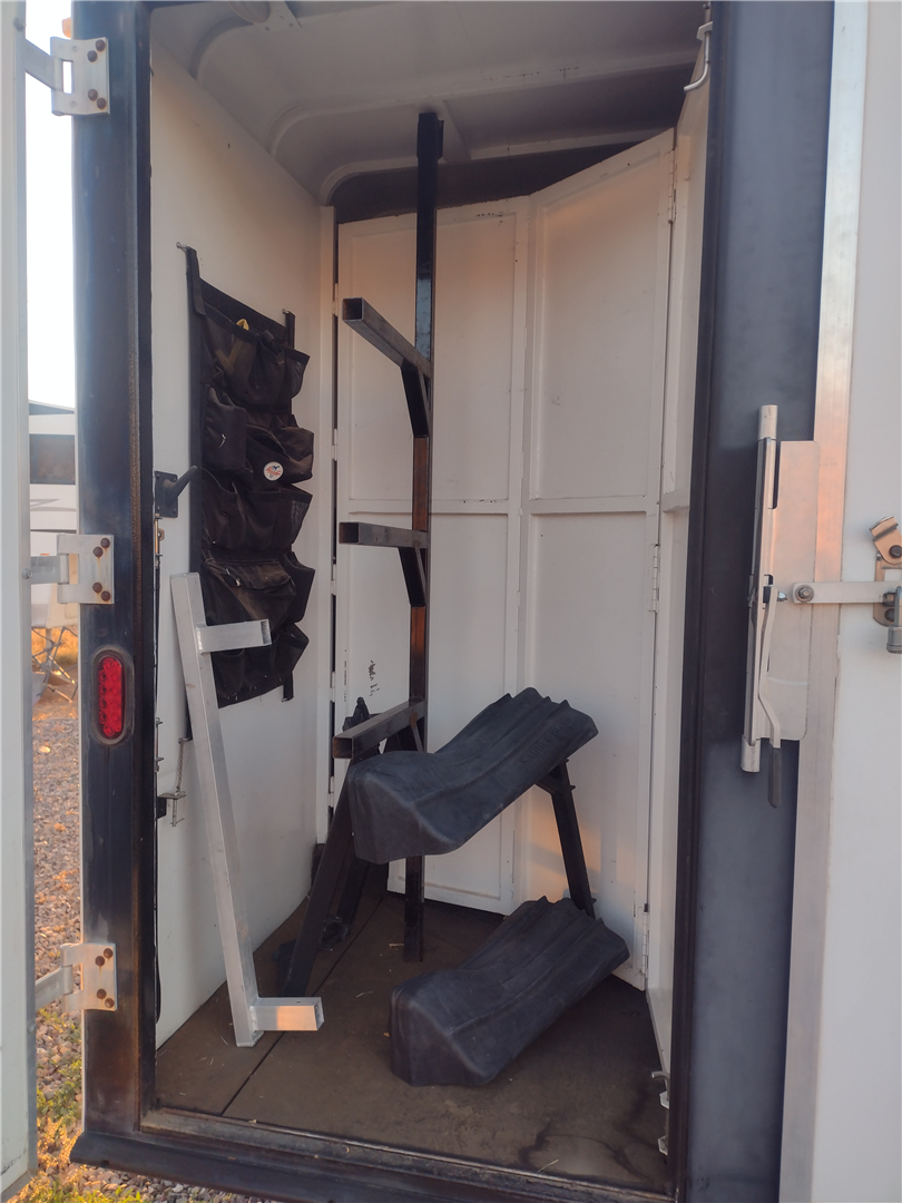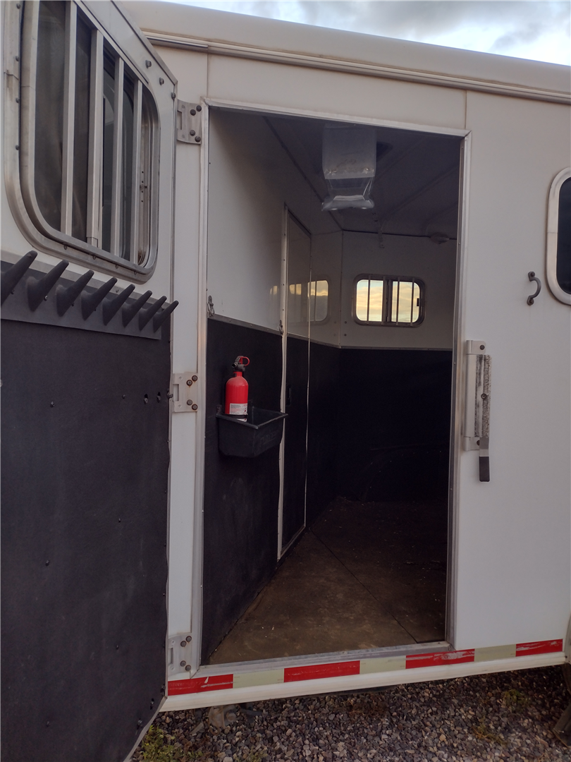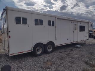 2007 Harmar Trail Rider 3-Horse LQ – 35’, Hauls Beautifully – $26,900 OBO Description: Well-maintained 3-horse living quarters trailer with lots of space and features for both you and your horses. Living Quarters (14’ Short Wall): Full queen bed + extra headroom and side space Sleeps 6 (4 adults + 2 kids) Dining slide-out Kitchen with fridge (electric/propane), propane stovetop & water heater Bathroom with pass-through door to horse area A/C, furnace, fireplace – all working Plenty of cabinets, short hanging closet, TV hookups Horse Area: 7’6” interior height, 8’ wide First stall half wall + escape door Rear folding tack Wood floors under mats in excellent shape Other Features: 35’ overall length 14-ply tires (1.5 yrs old), brakes checked 30-amp electric, dual propane tanks, electric jacks Steel frame with aluminum skin Pulls beautifully on the road Price: $26,900 OBO clydesdaleheart@gmail.com