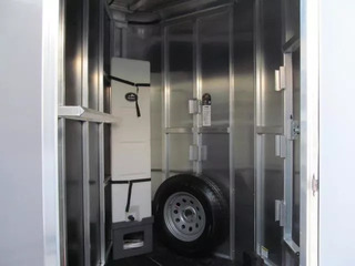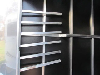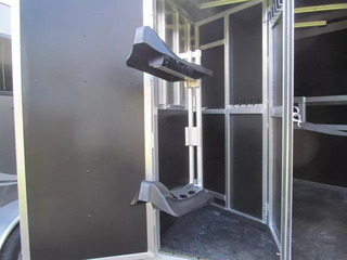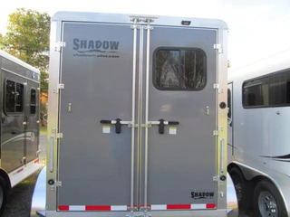 Shadow Stablemate 2 Horse BP Slant Load 7’6” Tall 6’9” Wide All aluminum construction Pressure treated wood floor 3,500 lb axles 15” radial tires Saddle Racks Bridle Hooks Spare tire w/ mount Swing Wall Dressing Room Rear Tack Room Drop Down Windows on Head Side Escape Door @ Stall #1 Double Rear Doors Water Tank Swing out Blanket Bars