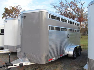 Trailers in stock: Horse Trailers, Stock Trailers, Equipment Trailers, Utility Trailers, Cargo Trailers, Dump Trailers, Car Trailers, Concession Trailers, Motorcycle Trailers, and Snowmobile Trailers.
