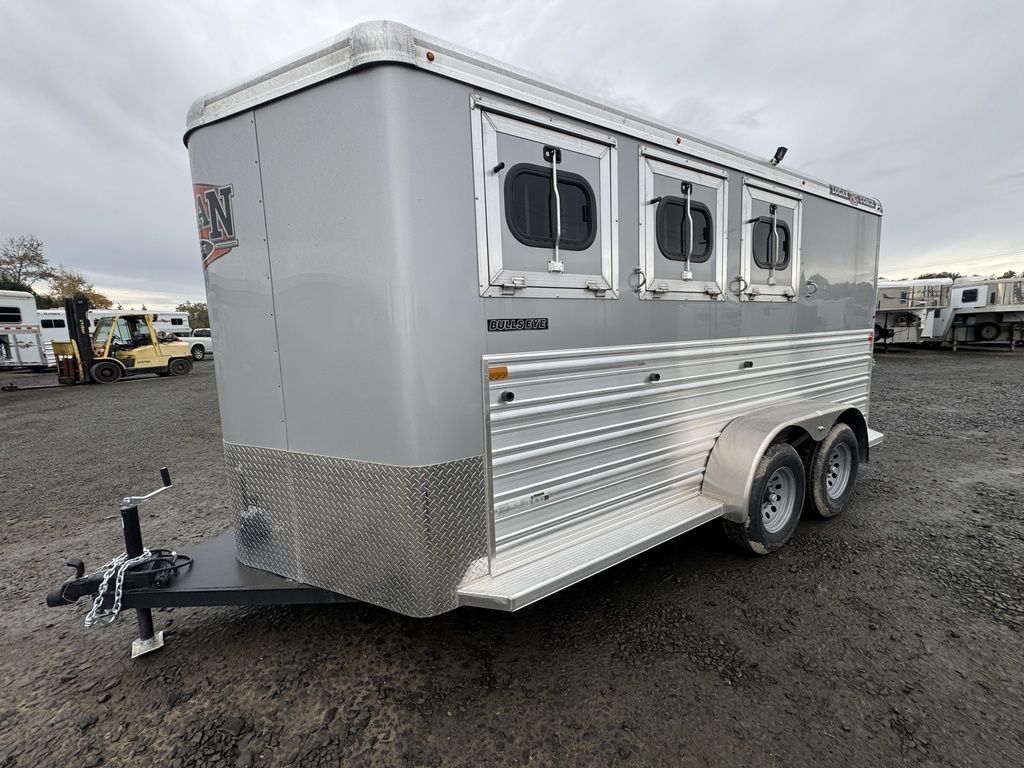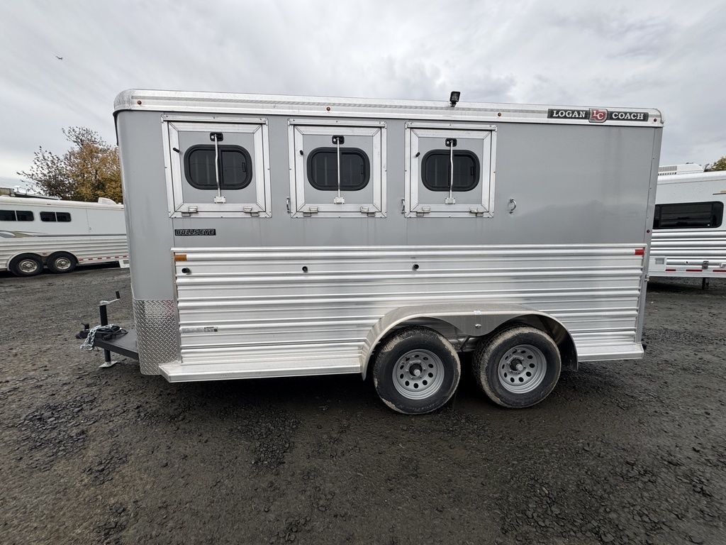2025 Logan Coach Bullseye 3 Horse Bumper PullThis trailer hits the mark! The horse trailer for everyday life. Features may include:Structural 7’ Tall 6’ 9” Wide Floor Length Total Length Dry Weight: 3,520 lbs GVWR: 8,120 lbs Galvanized Structural Tubing - Frame Rails, Floor and Wall UprightsAluminum Structural Roof BowsAluminum Structural Roof CoveWheels, Tires and AxlesTorsion AxlesSelf-adjusting BrakesSteel Wheels w/ Center Caps ExteriorSmooth Aluminum Sheets (.050 Skins) on Top Half of TrailerCorrugated Aluminum (.050 Skins) on Bottom Half of TrailerTreadbrite Gravel Guard around Front Wrap of BP NoseRear Rubber BumperExterior Tie Ring - One Per Stall on Each SideTack/Dressing RoomHD Aluminum 33” Wide Tack Door OpeningCarpet on FloorBlanket BarSwing-Out Saddle Rack (One Tier Per Stall)12 Bridle HooksCarpet on Top Half of Bulkhead Wall Behind BridlesStall AreaDouble Rear Doors w/ Cam LatchHeadside HD Drop Down Windows w/ Jailbar GrillTailside Bus Windows 20” x 37”Douglas Fir Wood Floor w/ Vortex Rubber Coating1/2” Rubber MatsVortex Kick WallPadded Square Tube DividerPop-up Vent Each Stall Warranty 8-Year Structural2-Year Hitch to Bumper All Horse Trailers, will be ran through our service department AFTER they are sold. Pickup & Delivery time is based on the service department’s schedule at the time of purchase. *Please review all features with a salesperson. We try our best, but sometimes features and dimensions get mislisted. Thank you!* Akins Trailer Sales541-995-4884* Located in Harrisburg, Oregon* Financing Available* Trade-Ins Consideredwww.akinstrailersales.com