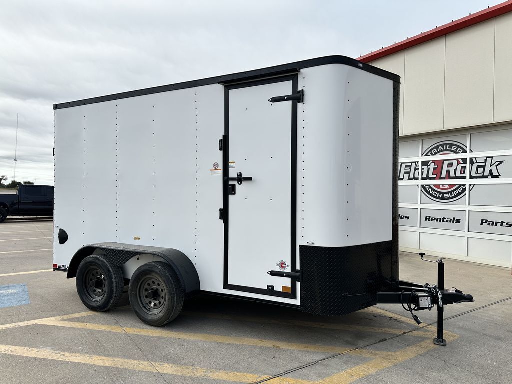6’ x 14’ Tandem Axle Cargo Trailer Elite V Nose 2 x 3,500 lb. Dexter EZ Lube 4 in Drop Brake Axles EV Sports Package Intergraded Hitch Design 3/8 in Plywood Lined Walls Rear Stabilizer Jacks ATP Corner Post Cover 2 5/16 in Coupler 32 in Side Door w/ RV Latch 205 75 R15 in Radials on Black Mod Wheels w/ Caps 2K Jack 16 in ATP Front Stone Guard Diamond Plate Aluminum Fenders 7’ Interior Height Rear Load Lights Spring Assist Ramp Door Gray Painted 3/4 in Plywood Floors 3/8 in Plywood Walls Empty Weight: 1,800 lbs. GVWR: 7,000 lbs. Carrying Capacity: 5,200 lbs.
