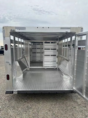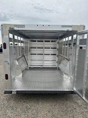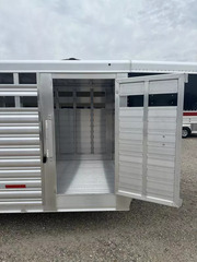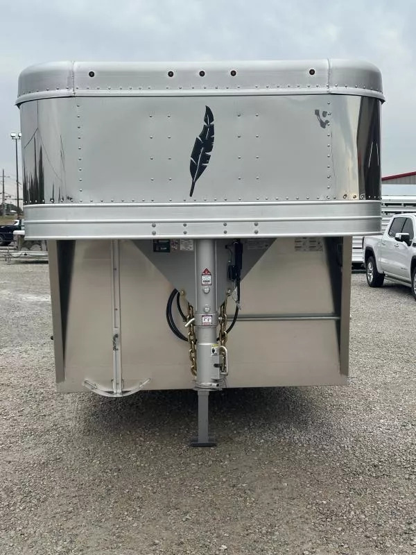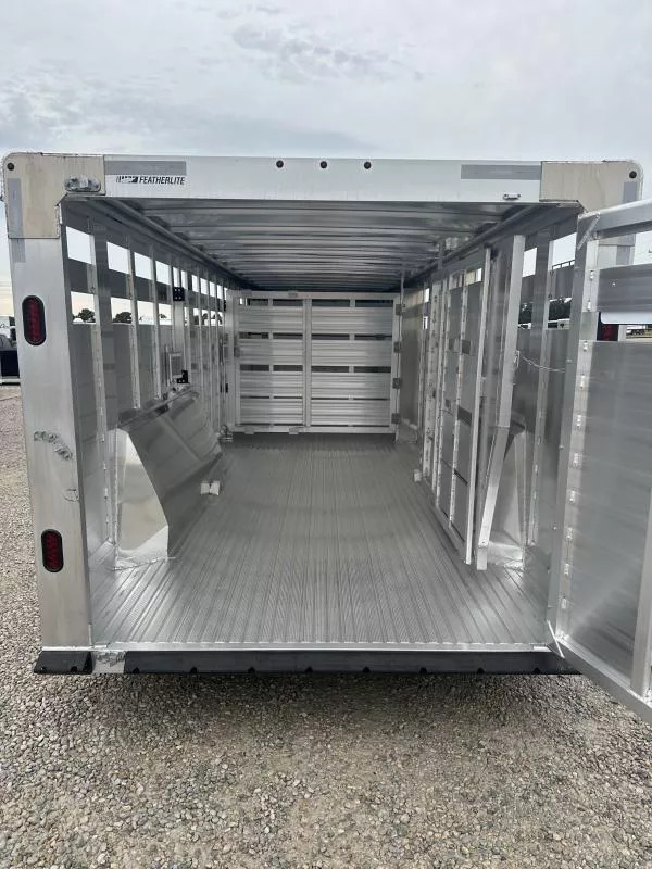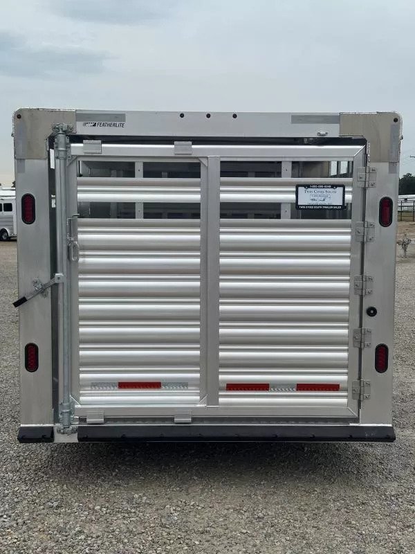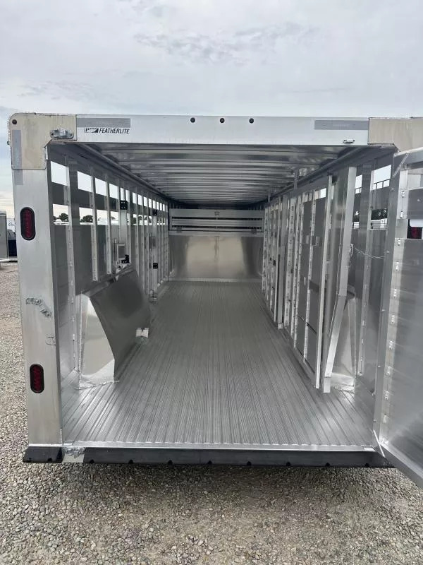 NEW 2026 Featherlite 8127 Stock Trailer ALL ALUMINUM 24’L x 8’W x 6’6”T Stock Area - Extruded skid resistant floor, full rear swing gate w/ slide, 2 center cut gates w/ slides, escape door, 2 interior LED load lights, western package, drop gate in nose. Other Features - LED clearance lights, additional clearance lights, tandem 8,000LB rubber torsion axles w/ electric brakes, 215/75R17.5 8 Lug tires, easy lube axles, 2 5/16” adjustable coupler, center leg landing gear, rubber bumper, skid plate, spare tire carrier, stainless steel nose, Trailer comes with full factory warranty! Financing available with rates as low as 6.49% WAC Call our sales department at 940-365-9919 After hours call or text 612-381-6782