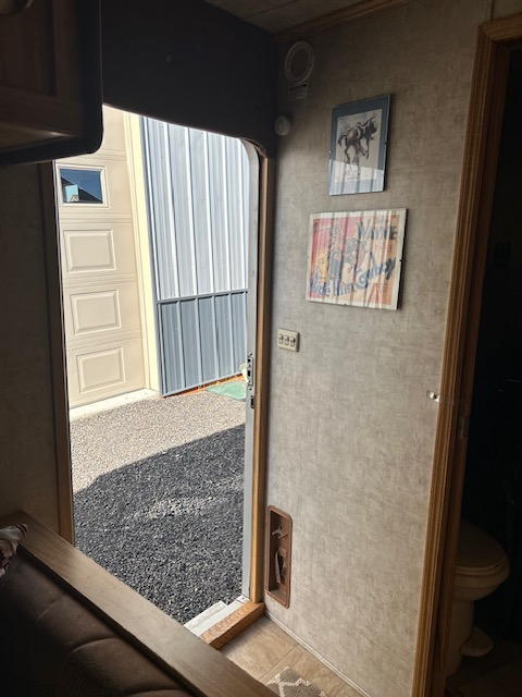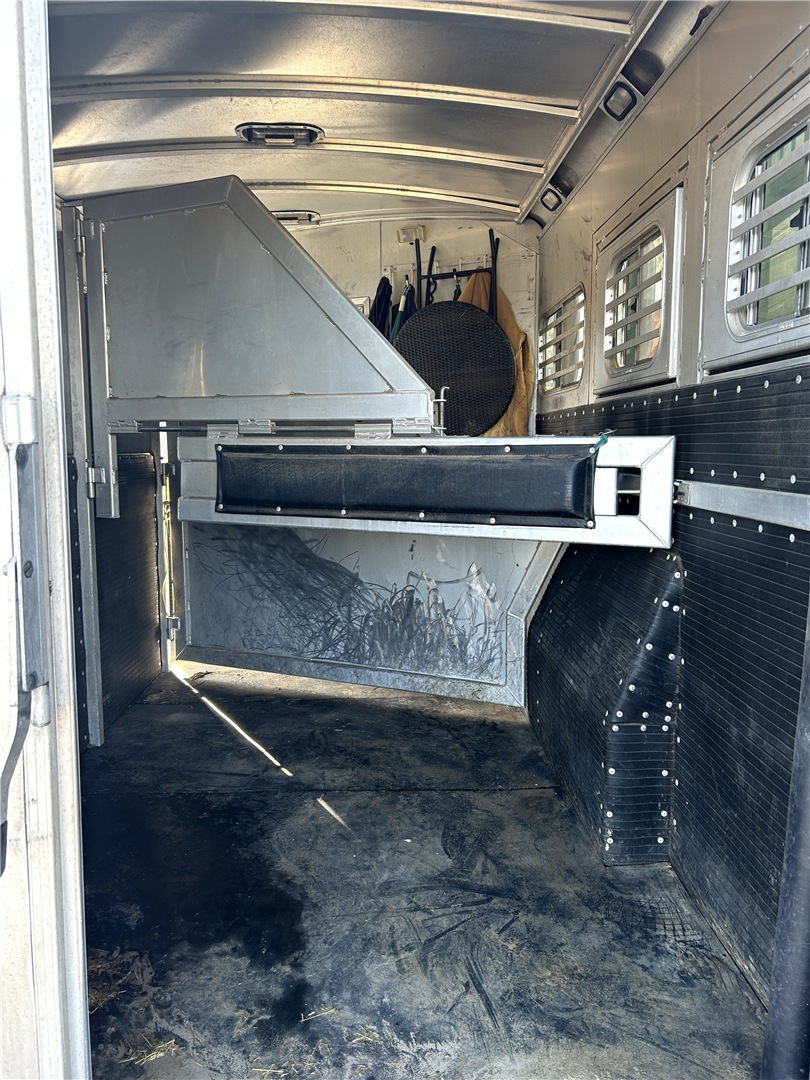 Tack room with three saddle racks, bridle hooks, blanket bar, and brush pocket. Stalls are padded on all sides with mangers, large storage area under the mangers, front and back fold down windows. Lights everywhere. The third stall has a man door for emergency exit and we used it as a back porch. This is a luxury coach, with lots of bells and whistles, Platinum Coach is one of the sturdiest trailers available. It has new batteries (in the last few months), recent brakes and bearings, and will replace the tires before sale.