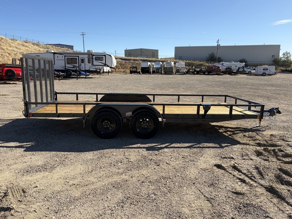 BUMPER PULL3.5K EZ LUBE IDLER SPRING AXLE & ELECTRIC BRAKE SPRING AXLE205/75 R15 (C) 6PLY TIRE WITH BLACK WHEELSPARE TIRE MOUNT2” 10K DEMCO ADJ CAST COUPLER2K TOP-WIND FLIP JACKWRAP TONGUESTRAIGHT DECK4’ SPRING ASSISTED LAY-DOWN GATEROUND DIAMOND PLATE TEARDROP FENDERSSTANDARD HEIGHT SIDE RAILS2” X 2” ANGLE TOPRAILSTANDARD STAKE POCKETS4” CHANNEL FRAME24” CENTER-TO-CENTER CROSSMEMBERSTREATED YELLOW PINE FLOORWIRINGLED PACKAGEDECAL PACKAGELAMAR GRAY POWDER COAT