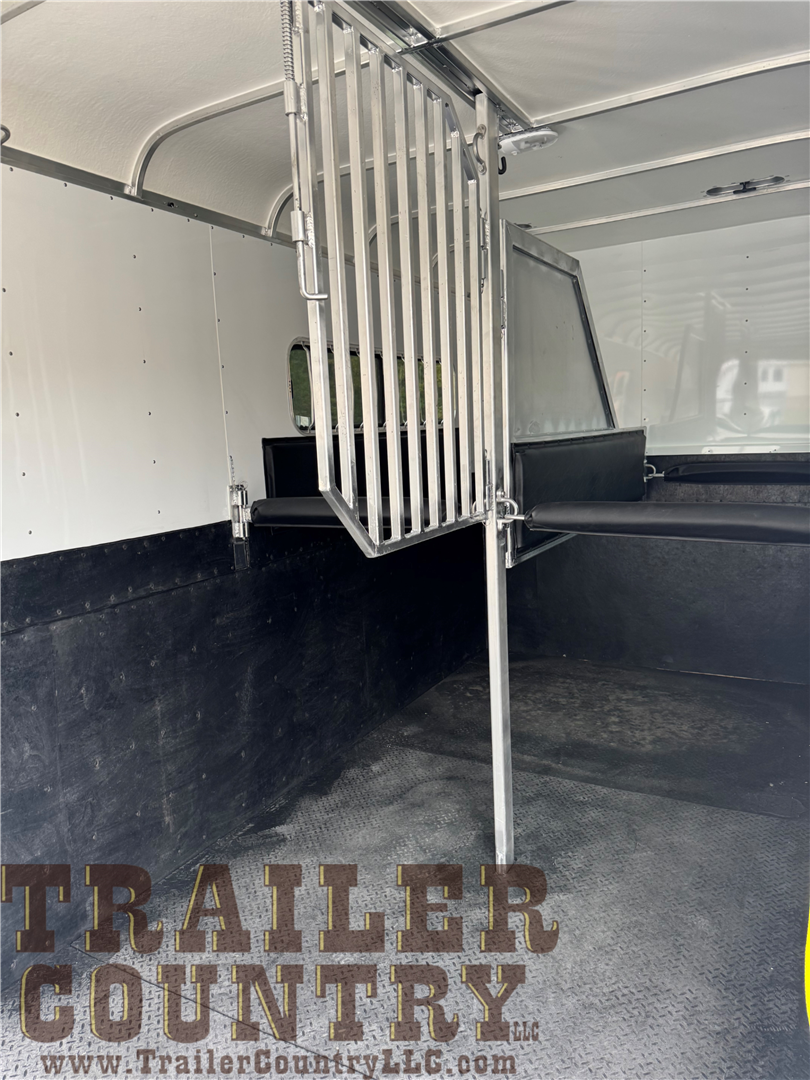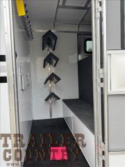 - 4′ dressing room features 4 saddle racks, bridle hooks, blanket bar, clothing bar, carpet in nose and drop sheet, rubber mats on floor, boot box