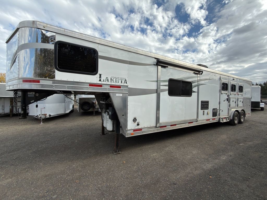 2017 Lakota Trailer C8315SR Charger Features may include: STRUCTURAL 7’ 6” Tall 8’ Wide 15’ Living Quarter 3 Horse Slant Load All aluminum framing Lined & Insulated Horse AreaWHEELS, TIRES and AXLES 7,000lb Axles Spare Tire and Rim Steel Wheels EXTERIOR One-Piece Aluminum Roof Skin White Exterior Package Dual Batteries Power Awning Single-Leg Hydraulic Jack Rubber Bumper Propane TanksSTALL AREA 50/50 Double Rear Doors Aluminum Floors Drop Down Windows on Head SideLarge Single Window on Tail SideFully MattedInterior and Exterior Tie Rings (one per stall) Two-way pop up vents (one per horse)Aluminum Padded Dividers with Slam LatchesStud WallEscape Door in First Stall with Drop Down WindowMangers (Every Stall but First) Walk Through Door from LQ to Horse AreaTACK ROOM *Saddle Rack is Missing in Photos Rear Tack Blanket Bar Bridle Hooks (3)-Tier Saddle Rack APPLIANCE6-Cubic Ft. Refrigerator Microwave 3-Burner Cooktop Oven Air Conditioner FurnaceINTERIOR DECOR Window Shades & Blinds Sofa at Riser Wall Lots of Counter Space Dinette in Slide Out Steps to Bed Area PLUMBING10 Gallon Water Heater Fresh Water Tank, Sizes Vary by Model 33 Gallon Each Grey and Black Water Tank ELECTRICAL TV Prep in Bed Area CD/DVD Player & RadioLight Fixtures30-Amp Power Convertor with Detachable Shoreline Outside 110-Volt OutletExterior Power Kill Switch BATHROOM Toilet Shower with Glass Door Sink and Vanity Skylight Above Shower CABINETSSolid Hardwood, Square Shaker Cabinet Doors Front Gooseneck CabinetAll Horse Trailers, will be ran through our service department AFTER they are sold. Pickup & Delivery time is based on the service department’s schedule at the time of purchase.*Please review all features with a salesperson. We try our best, but sometimes features and dimensions get mislisted. Thank you!*Akins Trailer Sales541-995-4884* Located in Harrisburg, Oregon* Financing Available* Trade-Ins Considered www.akinstrailersales.com