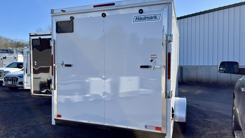 Connecticut Trailers features the following options for this Haulmark Trailer: • V-Nose • 6’6” Inside Height • Black Mod Steel Wheels • 16” Stoneguard • 5000lb Rear Ramp Door w/Ramp Extension • 4 D-Rings