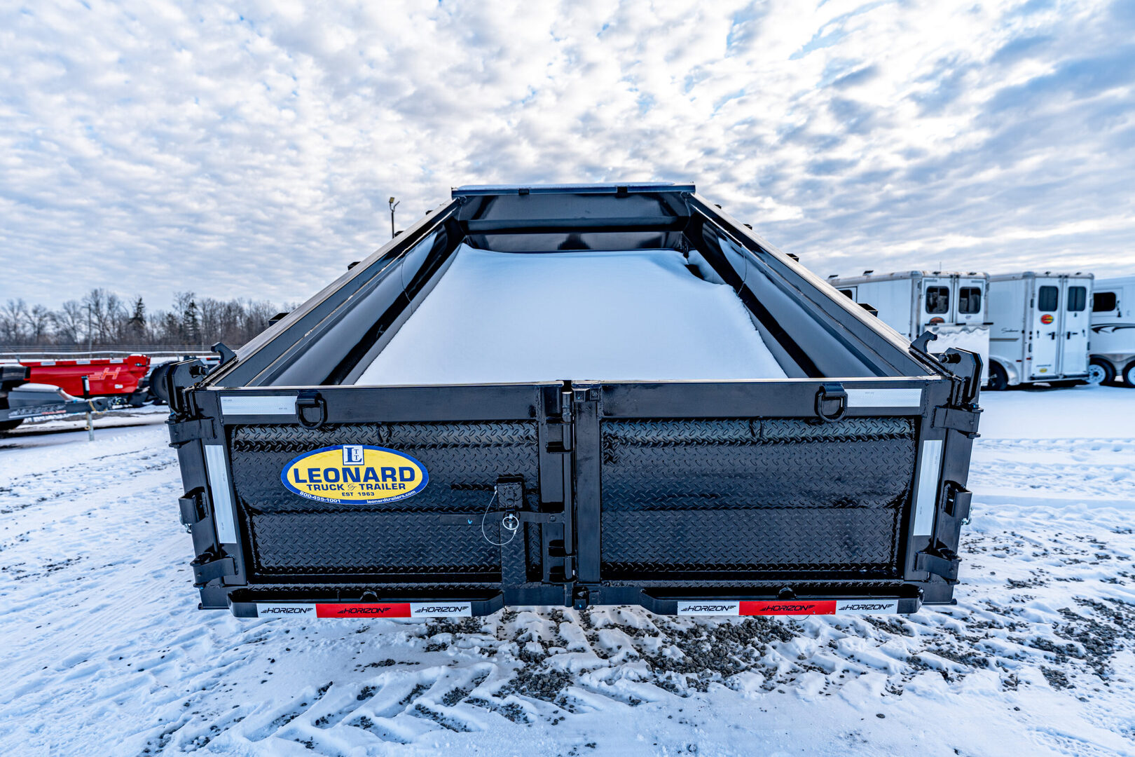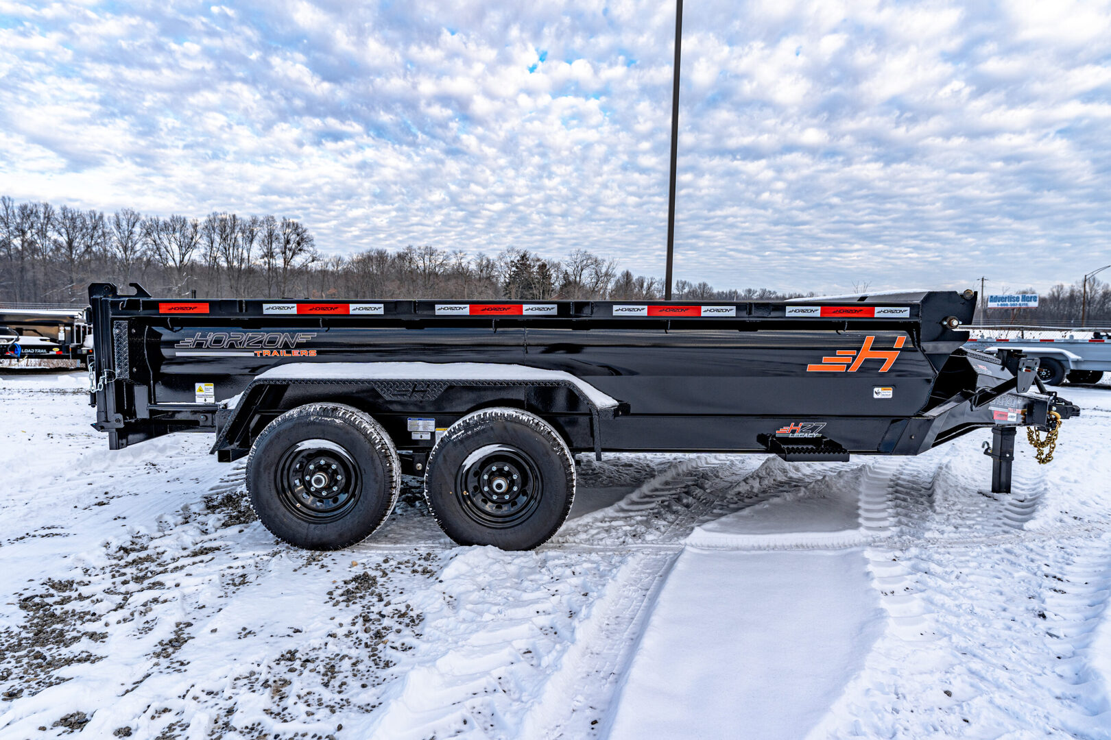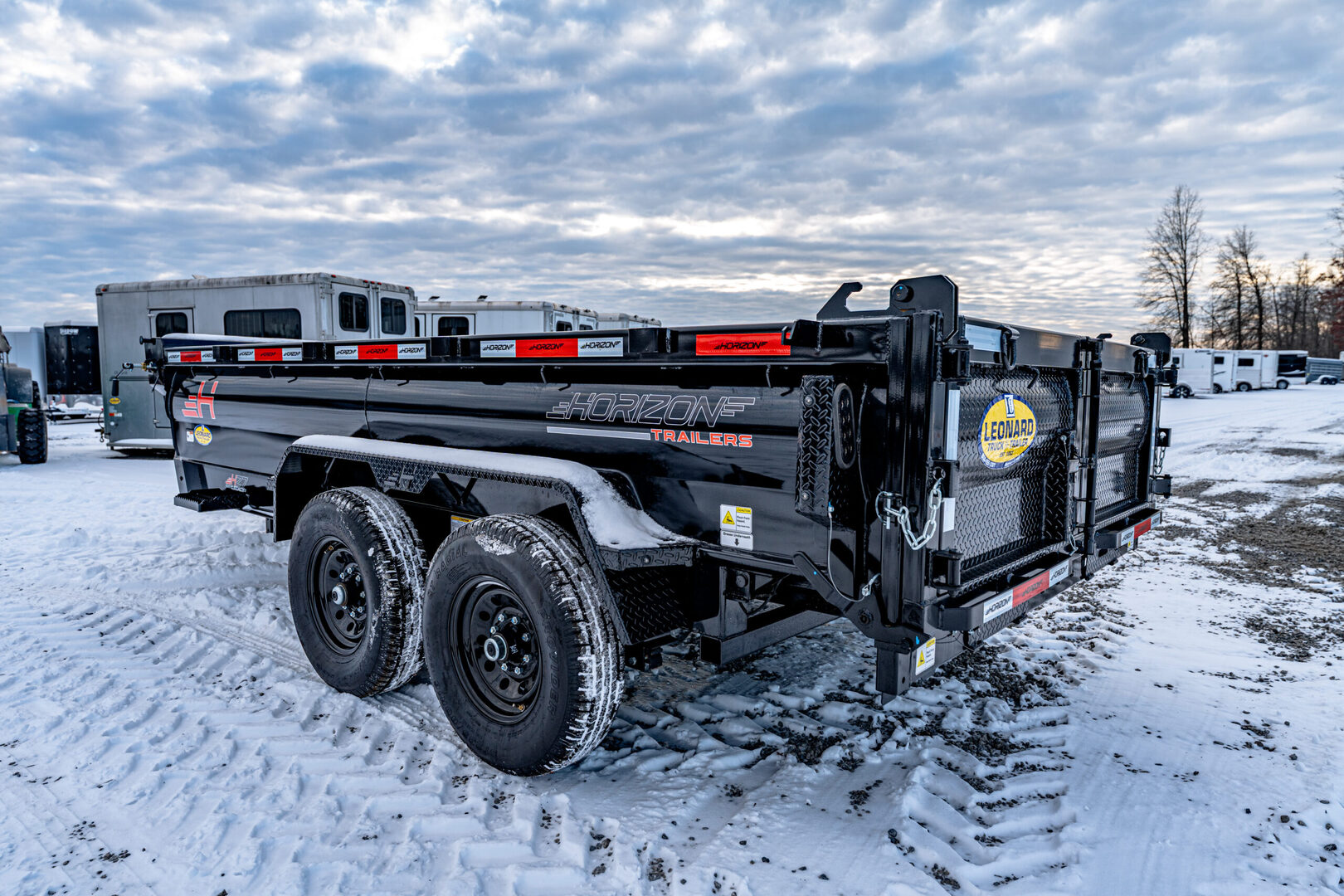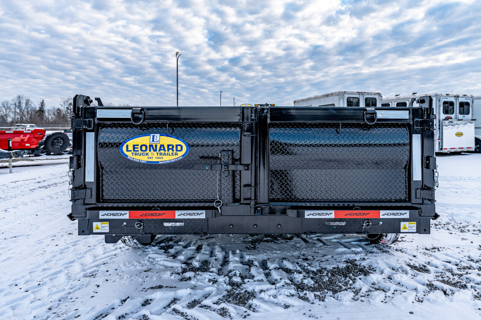 View Inventory: https://leonardtrailers.com/inventory/45264 Stock# 45264 New 2026 Horizon Trailers HZ7 14’X83”X2’ 7K 2A Dump Trailer The HZ7 15.2K 83” Hoist Dump Trailer delivers top-tier durability and functionality. With a GVWR of 15,200 lbs, 7k axles, and customizable lengths (12’, 14’, 16’), it’s built to handle tough jobs. Equipped with premium features like a powder-coated finish, manual tarp kit, and a robust hydraulic system, this trailer is ready for anything. Model:HZ7 14’X83”X2’ 7K 2A Warranty: Axle Warranty: 6 Year Lippert Spring Axle Warranty Trailer Warranty: 3-Year Frame, 1-Year Parts Standard Features – Highlights 8” I-Beam (13 lbs/ft) Mega lockable toolbox (houses battery and pump) Robust toolbox latch 4 D-rings welded inside box Ramp pockets w/ 6’ 4” long slide in 4” channel ramps Weld on spare tire mount Extra marker lights for added visibility Manual tarp kit Side step on both sides Trailer Specs Side Height: 2’ Bed Width: 83” Bed Height: 28” Weight Rating: GAWR: 7,000 lbs GVWR: 15,200 lbs Rear Gate: 3-way door – spreader gate Ramps: Ramp pockets w/ 6’ 4” long slide in 4” channel ramps (7,000 lbs wheel rating each, only over area of 12” or more) Safety Tarp: Manual tarp kit Lift System Hydraulics System: 2-button hydraulic – power up / power down Pump: KTI 12V hydraulic pump Controller: 14’ control cable 14’ Dump Lift Lift Cylinder: Hoist w/ 6” x 21” single push cylinder (20,000 lbs) Running Gear Tires Type: Radial tires Size: ST235/80R16 Ply: 10 Rating: 3,520 lbs Suspension Axle Type: 7K electric brake auto adjust EZ lube spring axles Axle Count: 2 Suspension Type: Spring   We offer outstanding financing options, accept trades, and can arrange nationwide NO HASSLE delivery! Inquire today for more information! (888) 333-6613 **We believe these specifications to be accurate. Any discrepancies are unintentional. Please verify information with a sales associate prior to purchase.** Stock Number:45264