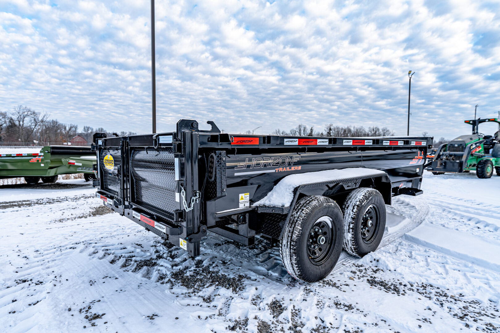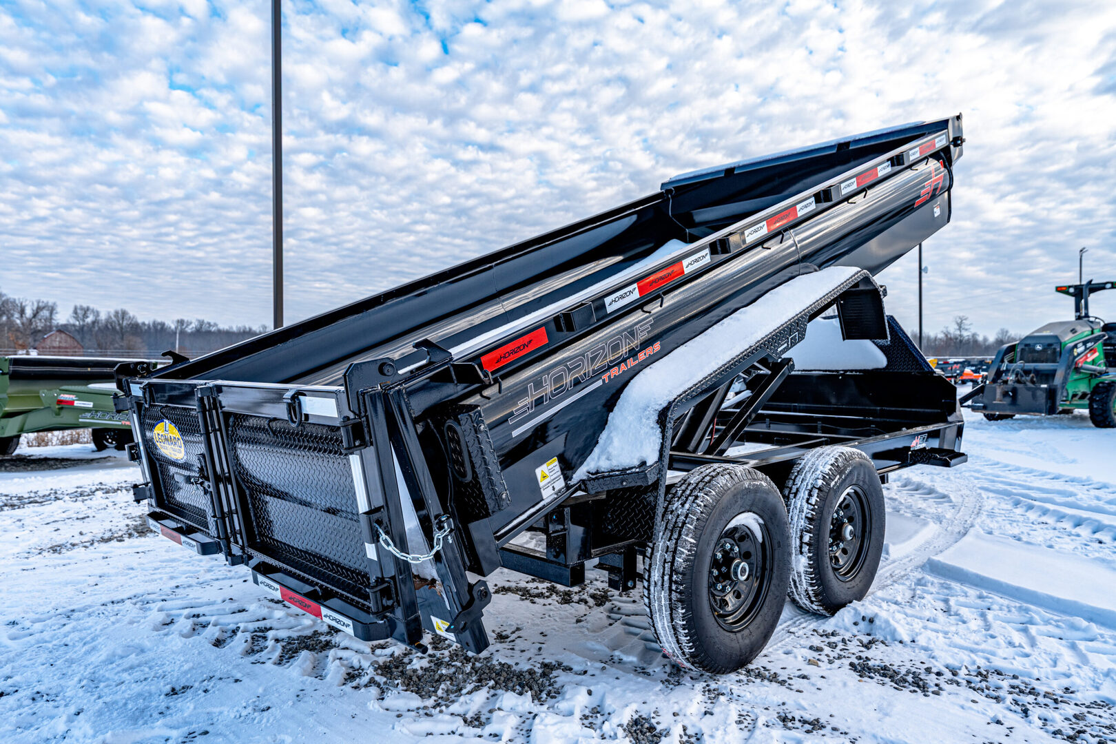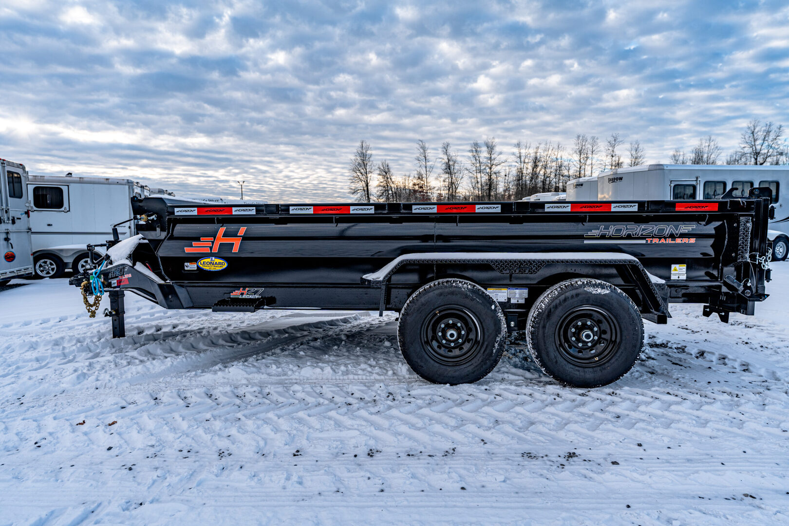 View Inventory: https://leonardtrailers.com/inventory/45264 Stock# 45264 New 2026 Horizon Trailers HZ7 14’X83”X2’ 7K 2A Dump Trailer The HZ7 15.2K 83” Hoist Dump Trailer delivers top-tier durability and functionality. With a GVWR of 15,200 lbs, 7k axles, and customizable lengths (12’, 14’, 16’), it’s built to handle tough jobs. Equipped with premium features like a powder-coated finish, manual tarp kit, and a robust hydraulic system, this trailer is ready for anything. Model:HZ7 14’X83”X2’ 7K 2A Warranty: Axle Warranty: 6 Year Lippert Spring Axle Warranty Trailer Warranty: 3-Year Frame, 1-Year Parts Standard Features – Highlights 8” I-Beam (13 lbs/ft) Mega lockable toolbox (houses battery and pump) Robust toolbox latch 4 D-rings welded inside box Ramp pockets w/ 6’ 4” long slide in 4” channel ramps Weld on spare tire mount Extra marker lights for added visibility Manual tarp kit Side step on both sides Trailer Specs Side Height: 2’ Bed Width: 83” Bed Height: 28” Weight Rating: GAWR: 7,000 lbs GVWR: 15,200 lbs Rear Gate: 3-way door – spreader gate Ramps: Ramp pockets w/ 6’ 4” long slide in 4” channel ramps (7,000 lbs wheel rating each, only over area of 12” or more) Safety Tarp: Manual tarp kit Lift System Hydraulics System: 2-button hydraulic – power up / power down Pump: KTI 12V hydraulic pump Controller: 14’ control cable 14’ Dump Lift Lift Cylinder: Hoist w/ 6” x 21” single push cylinder (20,000 lbs) Running Gear Tires Type: Radial tires Size: ST235/80R16 Ply: 10 Rating: 3,520 lbs Suspension Axle Type: 7K electric brake auto adjust EZ lube spring axles Axle Count: 2 Suspension Type: Spring   We offer outstanding financing options, accept trades, and can arrange nationwide NO HASSLE delivery! Inquire today for more information! (888) 333-6613 **We believe these specifications to be accurate. Any discrepancies are unintentional. Please verify information with a sales associate prior to purchase.** Stock Number:45264