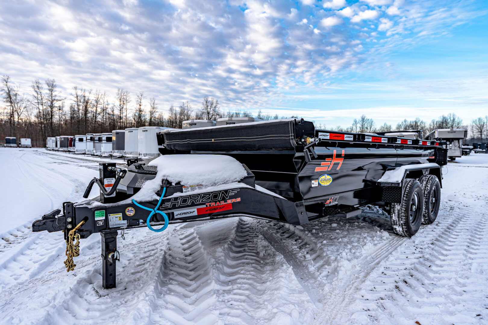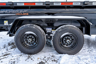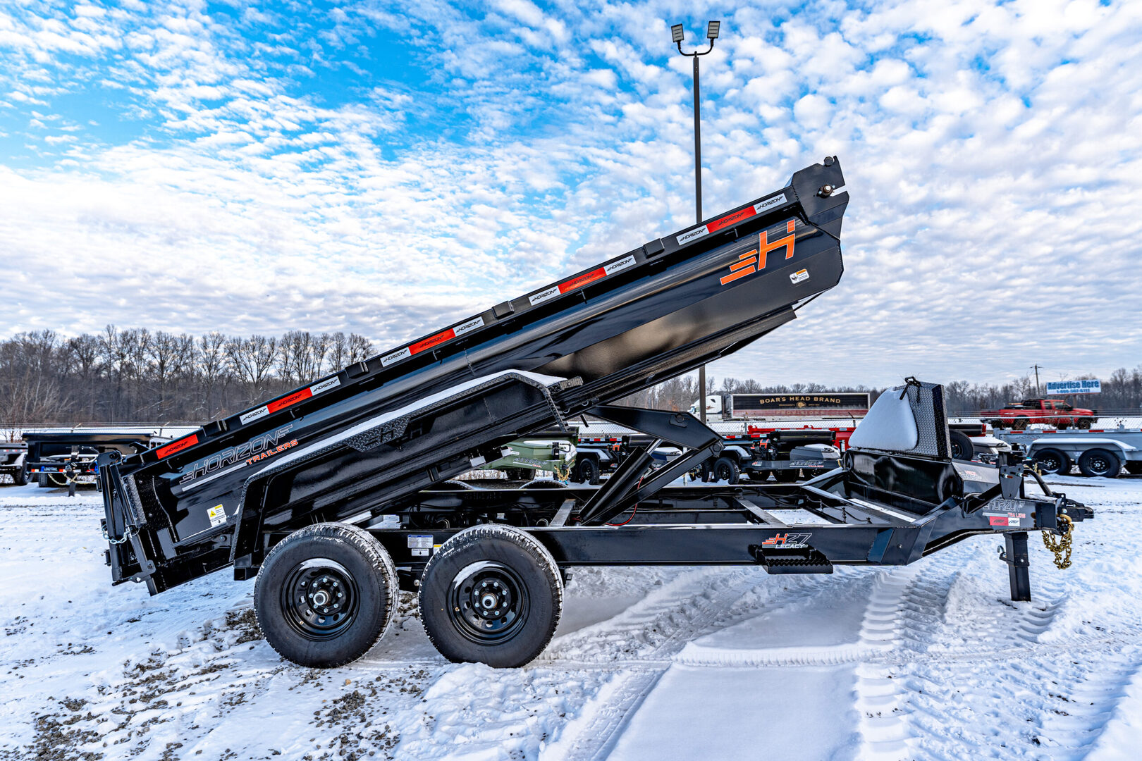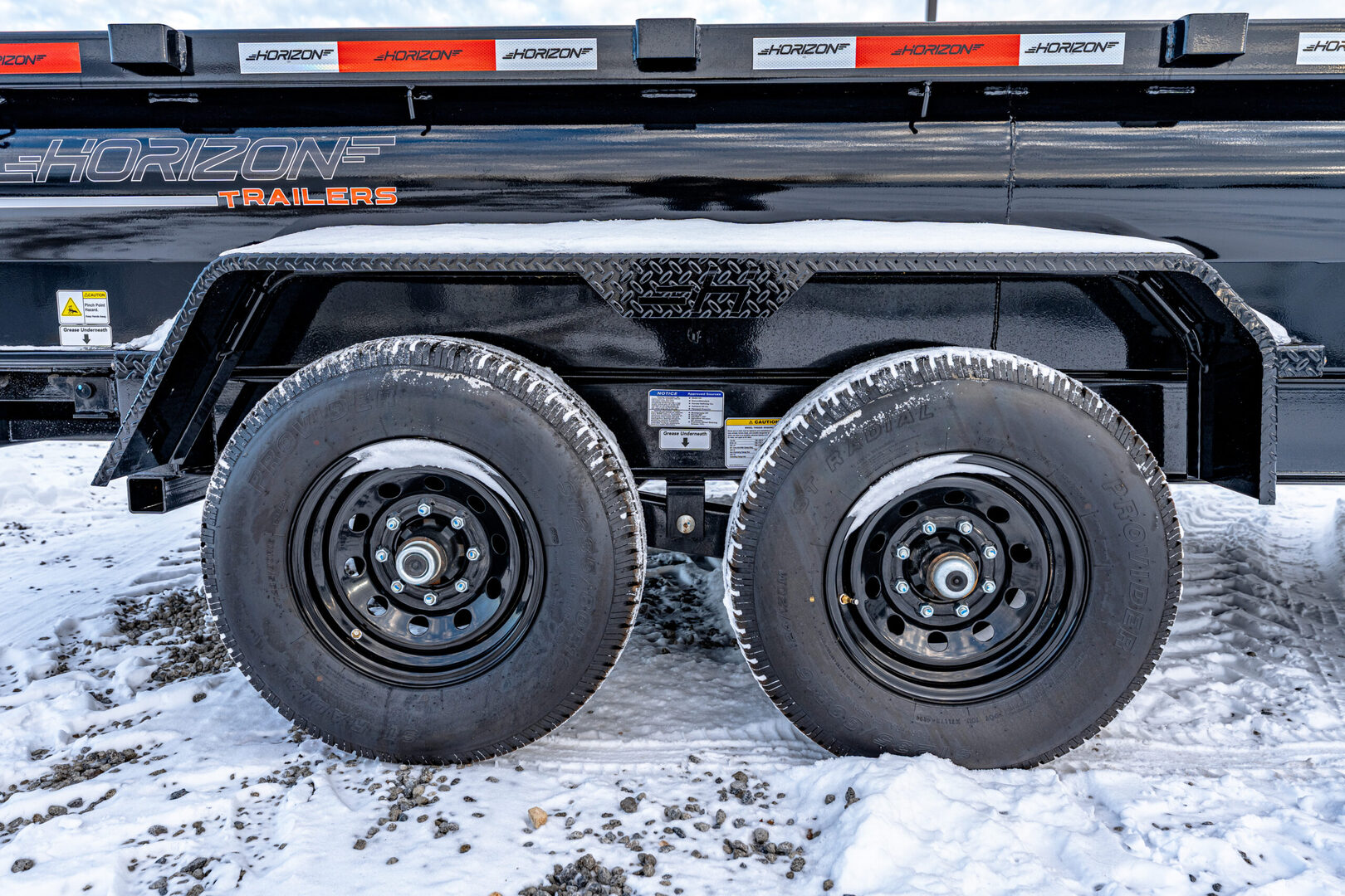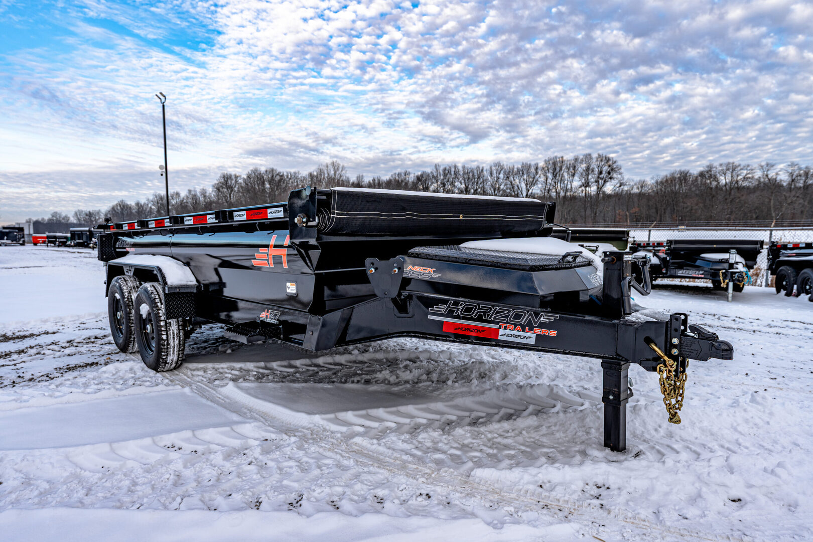 View Inventory: https://leonardtrailers.com/inventory/45264 Stock# 45264 New 2026 Horizon Trailers HZ7 14’X83”X2’ 7K 2A Dump Trailer The HZ7 15.2K 83” Hoist Dump Trailer delivers top-tier durability and functionality. With a GVWR of 15,200 lbs, 7k axles, and customizable lengths (12’, 14’, 16’), it’s built to handle tough jobs. Equipped with premium features like a powder-coated finish, manual tarp kit, and a robust hydraulic system, this trailer is ready for anything. Model:HZ7 14’X83”X2’ 7K 2A Warranty: Axle Warranty: 6 Year Lippert Spring Axle Warranty Trailer Warranty: 3-Year Frame, 1-Year Parts Standard Features – Highlights 8” I-Beam (13 lbs/ft) Mega lockable toolbox (houses battery and pump) Robust toolbox latch 4 D-rings welded inside box Ramp pockets w/ 6’ 4” long slide in 4” channel ramps Weld on spare tire mount Extra marker lights for added visibility Manual tarp kit Side step on both sides Trailer Specs Side Height: 2’ Bed Width: 83” Bed Height: 28” Weight Rating: GAWR: 7,000 lbs GVWR: 15,200 lbs Rear Gate: 3-way door – spreader gate Ramps: Ramp pockets w/ 6’ 4” long slide in 4” channel ramps (7,000 lbs wheel rating each, only over area of 12” or more) Safety Tarp: Manual tarp kit Lift System Hydraulics System: 2-button hydraulic – power up / power down Pump: KTI 12V hydraulic pump Controller: 14’ control cable 14’ Dump Lift Lift Cylinder: Hoist w/ 6” x 21” single push cylinder (20,000 lbs) Running Gear Tires Type: Radial tires Size: ST235/80R16 Ply: 10 Rating: 3,520 lbs Suspension Axle Type: 7K electric brake auto adjust EZ lube spring axles Axle Count: 2 Suspension Type: Spring   We offer outstanding financing options, accept trades, and can arrange nationwide NO HASSLE delivery! Inquire today for more information! (888) 333-6613 **We believe these specifications to be accurate. Any discrepancies are unintentional. Please verify information with a sales associate prior to purchase.** Stock Number:45264