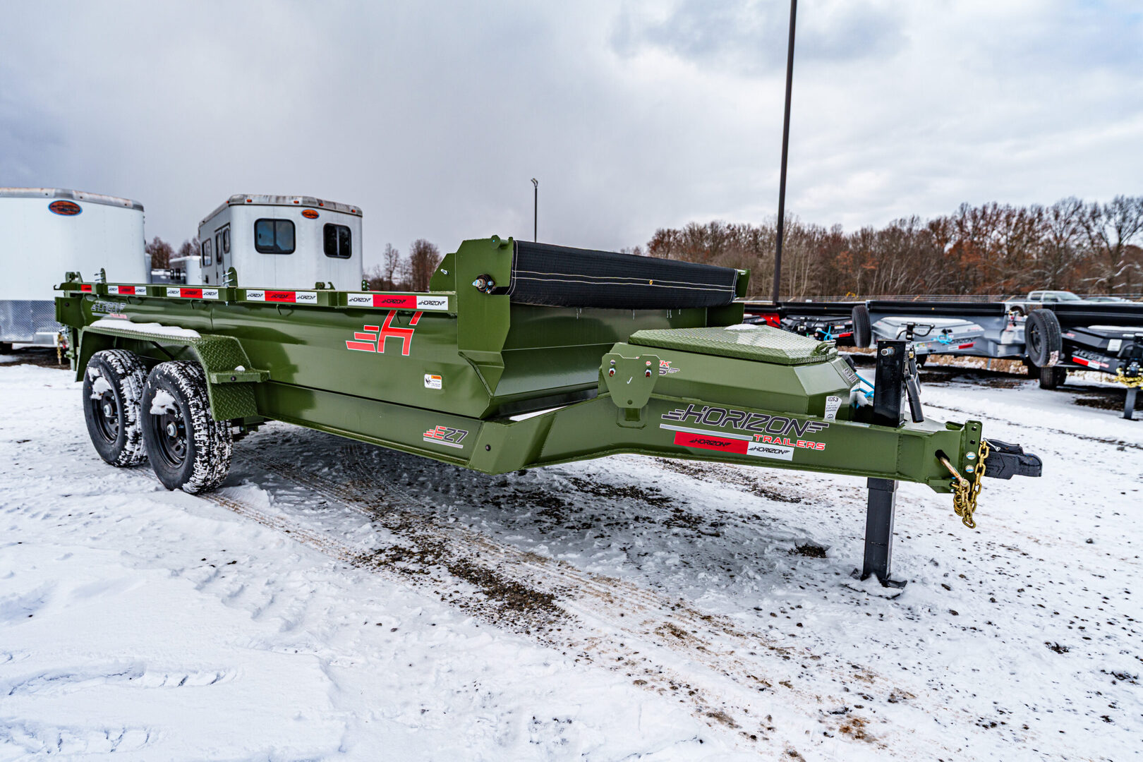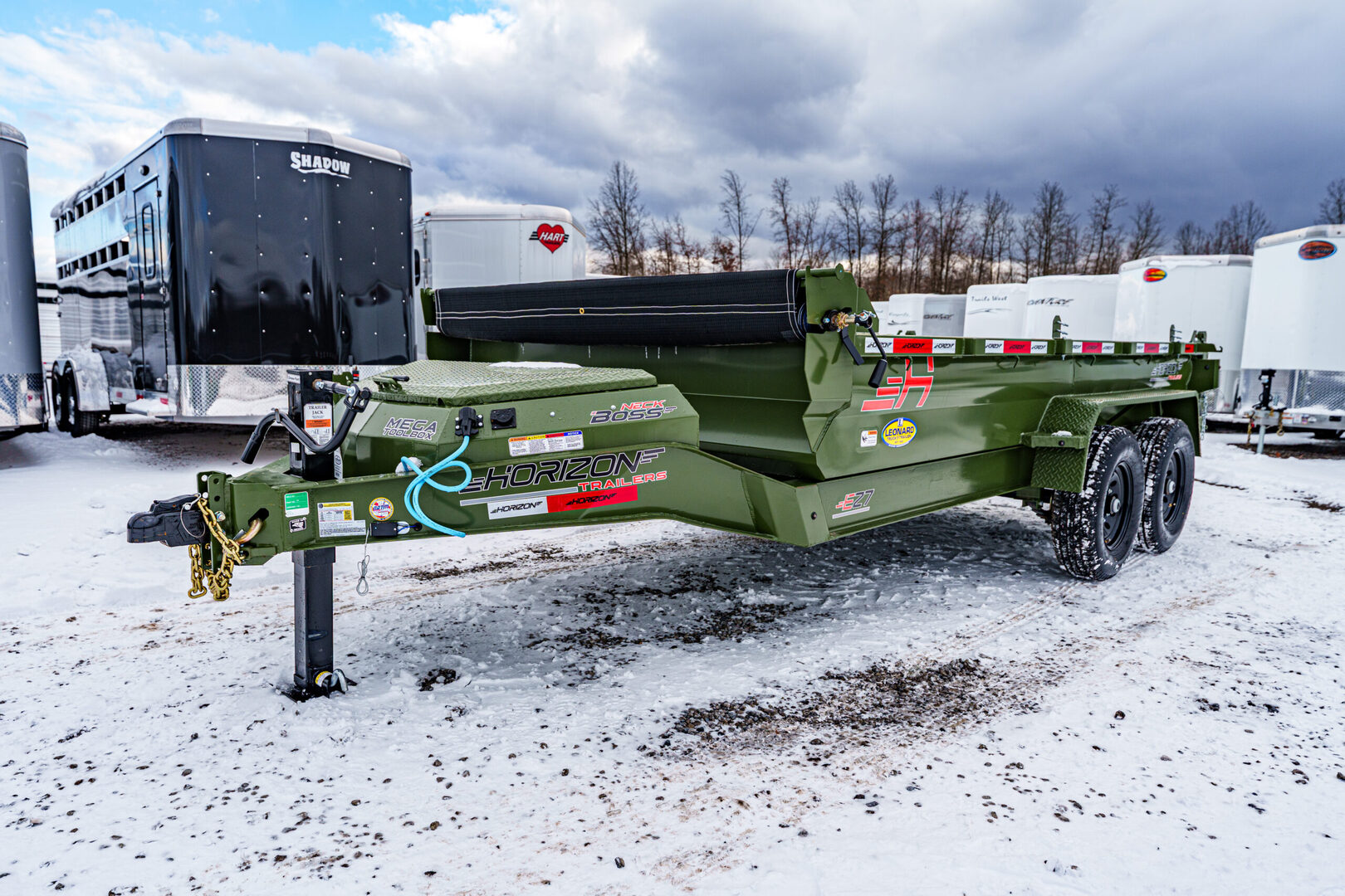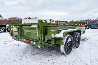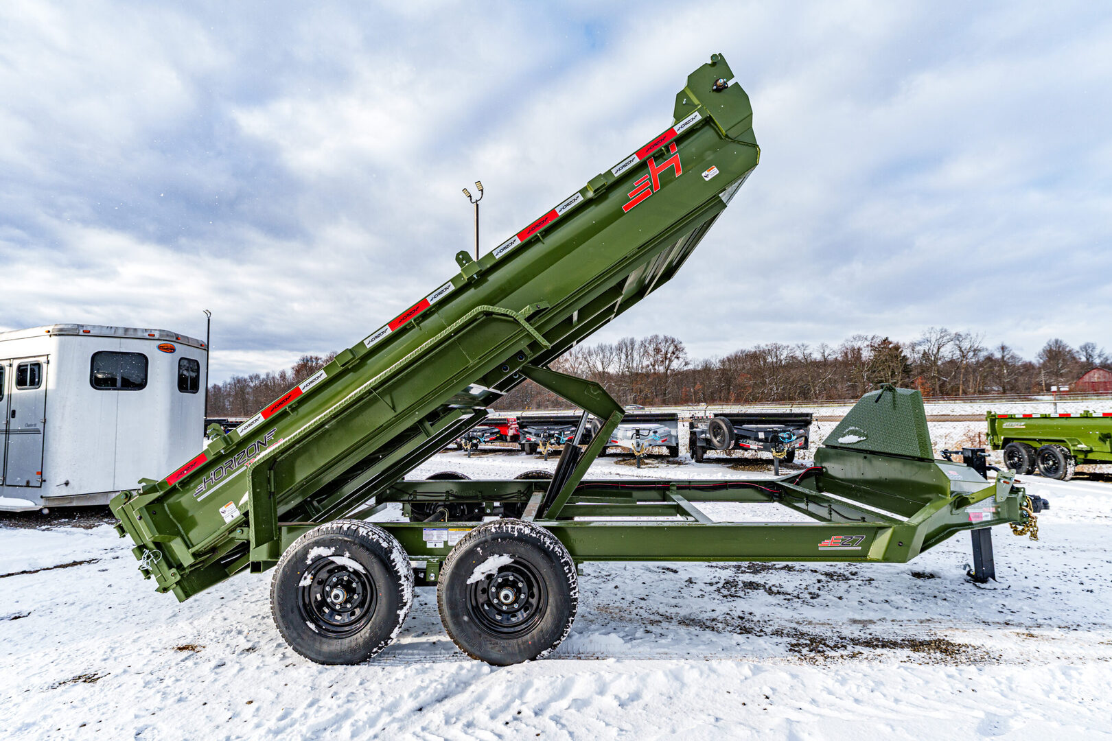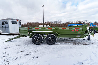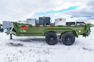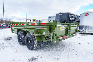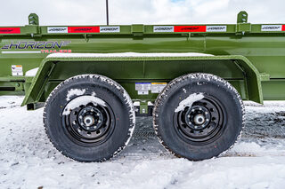 View Inventory: https://leonardtrailers.com/inventory/45263 Stock# 45263 New 2026 Horizon Trailers EZ7 14’ x 83” 7K 2A DT Dump Trailer The Horizon EZ7 is an economical dump trailer built for strength, reliability, and performance. Designed with a reinforced steel frame and a high-capacity hydraulic hoist, it delivers smooth dumping and long-term durability. Adjustable side heights, multiple size options, and a 3-way spreader gate make it ideal for a wide range of hauling applications. Standard features include DOT-approved LED lighting, a lockable toolbox, and durable suspension for safe and dependable operation. Model: EZ7 14’ x 83” 7K 2A DT Warranty: Axle: 6-Year Lippert Spring Axle Warranty Trailer: 3-Year Frame / 1-Year Parts Trailer Specs: Tongue: Neckboss 8” Engineered I-Beam, 60” length Weld-on spare tire mount Coupler: Adjustable 2-5/16” Auto Latch (17,000 lbs) Jack: 12,000 lb side-wind, spring-loaded drop leg Toolbox: Mega lockable box housing battery & pump with extra storage Frame: 8” I-beam main frame (13 lbs/ft) 3” channel crossmembers, 16” spacing 3” x 5” x 1/4” angle iron bed frame Bed: 83” width | 28” height | 9ga steel floor Dump angle: 40°–48° 4 welded D-rings inside bed Rear: 3-way spreader gate Ramp pockets with 6’4” slide-in ramps (4,000 lb wheel rating each) Sides: 19” height | 12ga rounded steel | 2” x 3” x 11ga top rail Stake pockets and J-hooks 14ga diamond plate fenders Hydraulics: 5” x 16” single push cylinder (15,000 lb) KTI 12V hydraulic pump | 2-button power up/down controller | 14’ cord Axles & Tires: (2) 7K Lippert EZ Lube spring axles w/ electric brakes (8 on 6.5”) ST235/80R16 radial tires on 16” black mod wheels We offer outstanding financing options, accept trades, and can arrange nationwide NO HASSLE delivery! Inquire today for more information — (888) 333-6613 We believe these specifications to be accurate. Any discrepancies are unintentional. Please verify information with a sales associate prior to purchase. Stock Number:45263