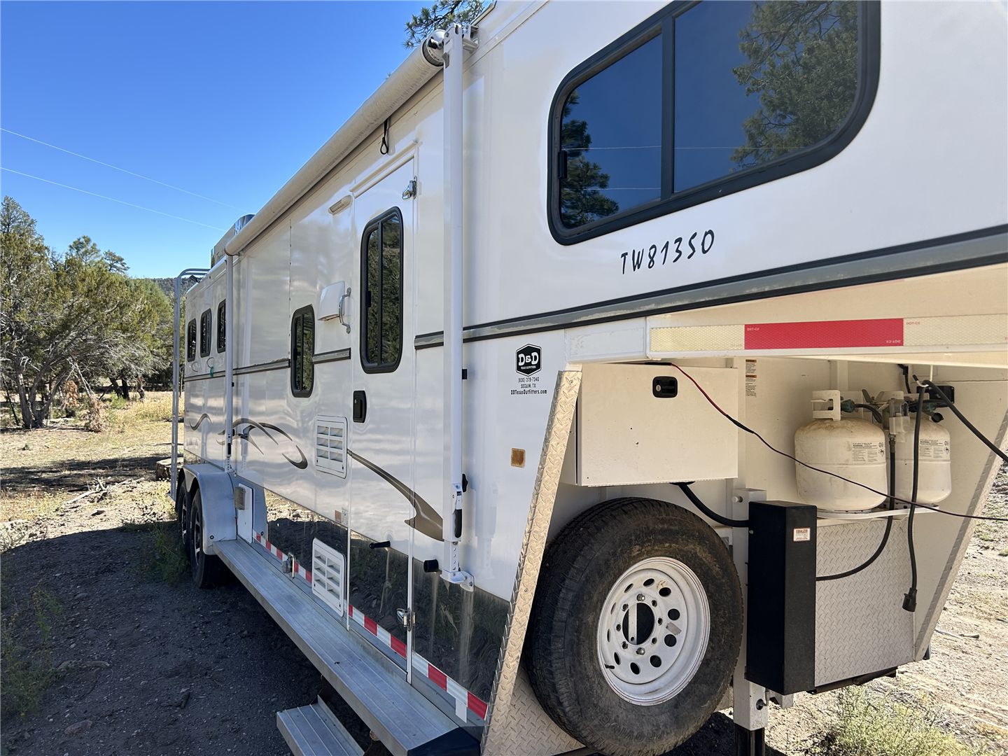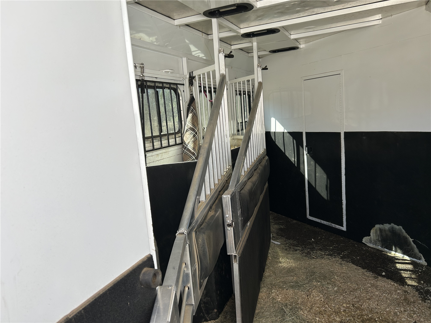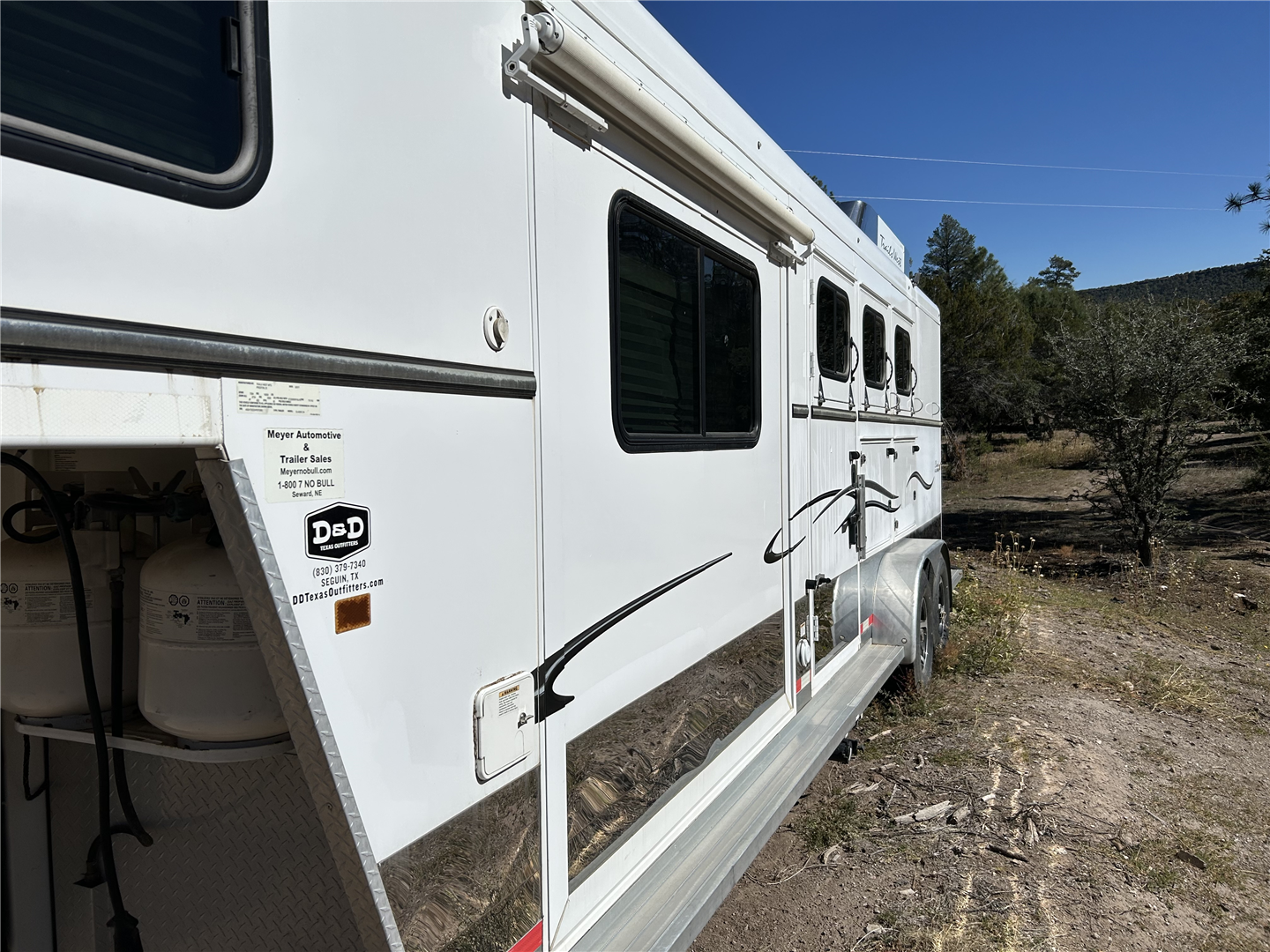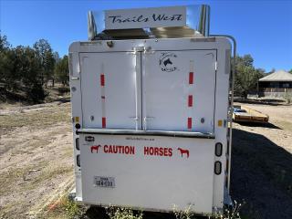 Trails West three horse slant with ramp living quarters and one slide. Included is a camera to monitor horses. Comes with a shock absorbing hitch,