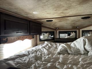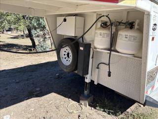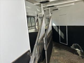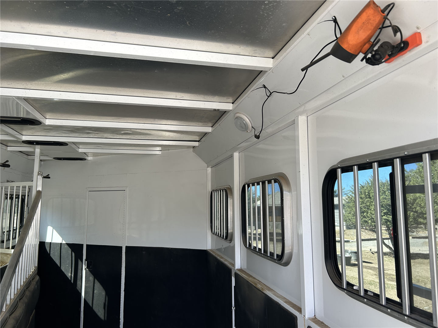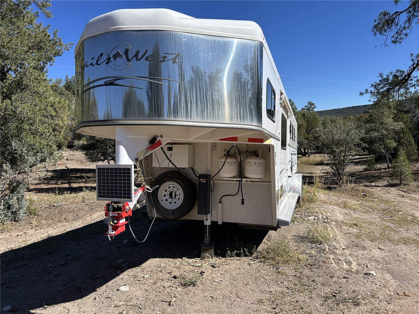 Trails West three horse slant with ramp living quarters and one slide. Included is a camera to monitor horses. Comes with a shock absorbing hitch,