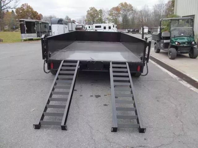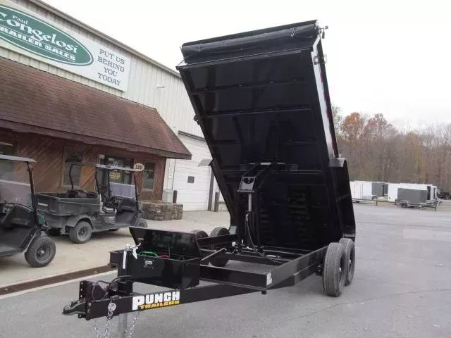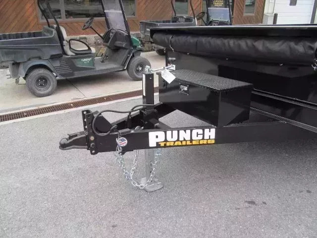 Meet the new PUNCH Dump trailer! Smartly simple, surprisingly capable. When you just need a simple trailer that works- without unnecessary bells, whistles, or a big price tag- the PUNCH Dump Trailer delivers. Built in the USA with integrity, it’s designed for one thing: getting the job done, day after day. It’s purpose-built for real-world hauling: debris, soil, machinery, you name it! And- it’s smartly priced so your investment pays for itself fast! Specifications 83” Wide X 14’ Long X 19” Sides 14,000 GVW 7,000 Lb slipper spring axles 3,460 Lb empty weight 10,540 Payload 6” channel frame 3” channel crossmembers 5” channel tongue 2 5/16” adjustable coupler or pintle ring 7K drop leg jack 4 wheel electric brakes LED lights 10 gauge floor Combo barn door spreader gate Power up, Power down hydraulics Deep cycle battery On board charger (4) 1/2” d rings Stake pockets Spare tire carrier Tongue mounted HD control box with key lock Integrated tarp mount w/ tarp kit Optional Ramps added to this unit