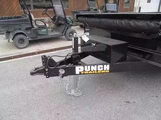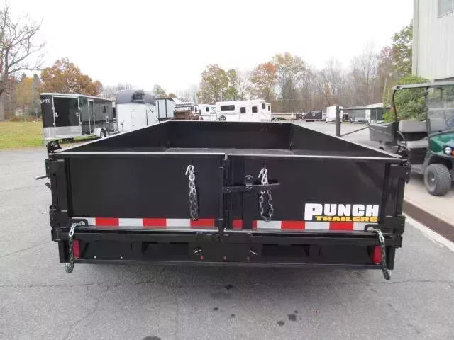 Meet the new PUNCH Dump trailer! Smartly simple, surprisingly capable. When you just need a simple trailer that works- without unnecessary bells, whistles, or a big price tag- the PUNCH Dump Trailer delivers. Built in the USA with integrity, it’s designed for one thing: getting the job done, day after day. It’s purpose-built for real-world hauling: debris, soil, machinery, you name it! And- it’s smartly priced so your investment pays for itself fast! Specifications 83” Wide X 14’ Long X 19” Sides 14,000 GVW 7,000 Lb slipper spring axles 3,460 Lb empty weight 10,540 Payload 6” channel frame 3” channel crossmembers 5” channel tongue 2 5/16” adjustable coupler or pintle ring 7K drop leg jack 4 wheel electric brakes LED lights 10 gauge floor Combo barn door spreader gate Power up, Power down hydraulics Deep cycle battery On board charger (4) 1/2” d rings Stake pockets Spare tire carrier Tongue mounted HD control box with key lock Integrated tarp mount w/ tarp kit Optional Ramps added to this unit