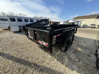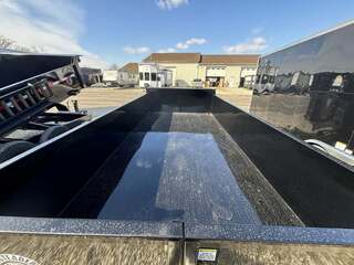 This versatile dump is low profile 7x14 w/2 7000lb axles, 8 lug 235/80/R16 radial tires , 2 5’16 adjustable coupler, power up and down with 2 cylinders,   tarp, rear barn doors with ramps unit holds 6.9 cu yards 10 guage floor, 12 guage body construction, 2’ high sidewalls, tue steel frame, extra reinforced frame, 6’8” interior bed, stake pockets, front mounted safetuy prop rod, premium paint, 4 wheel brakes, EZ lube axles, breakaway switch, battery trickle charger that is prewired for truck charge, deep cycle battery, enclosedf wiring, molded 7 way plug, complete LED lighting, DOT conspicuity tape, tounge jack. NATM certified GVWR 14000    curb weight 3380   payload 9240 lbs   6.9 cu yards  WITH SOLAR