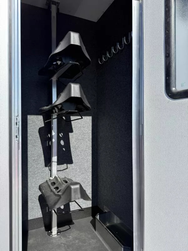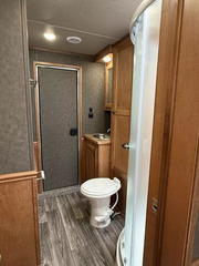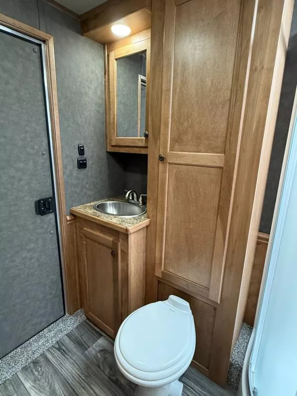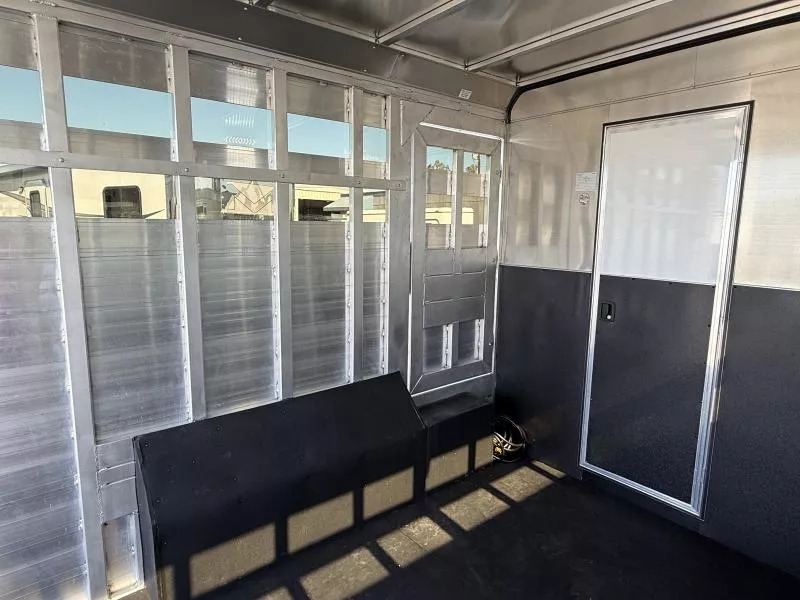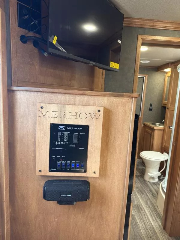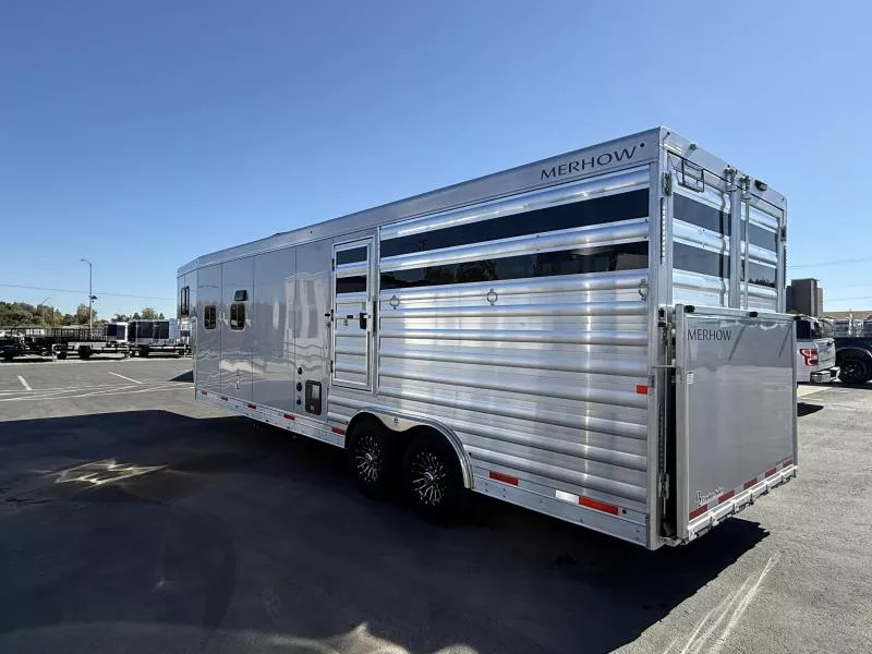 2026 Merhow Longhorn 8014 Stock Trailer with 14.5’ Living Quarters and Side Tack and 12’ Stock Rear. * 8’ wide, 7’6” Tall * Aluminum Wheels on ST235/80R16” Tires * 7,000# Torsion Axles * Dual Batteries, Dual Propane Tanks * Hydraulic Jack * Power Awning with LED Light Strip * 38 Gal. Fresh Tank * 35 Gal. Black & Gray Tanks * Outside Water Spigot * Spare Tire with Jiffy Jack * Load Light on Rear * Silver Skin Exterior * Living Area Includes: * Solid Wood Cabinets * Great Stairway into GN Bunk * Jackknife Sofa * Soft Touch Walls * 8 cu. ft. 12v only Refrigerator * 2 Burner Recessed Cooktop * Stainless Sink * Flip Up Counter Top * Microwave * 13.5K Ducted AC * Furnace * Wardrobe Closet in GN * Mattress * Bluetooth Stereo/DVD Radio * Inside & Outside Speakers * Removable Alpine Bluetooth Speaker * TV Antenna with Booster * 32” Smart TV on Swing Arm * Vanity in Bathroom with Medicine Cabinet Above * 32” Radius Shower * Sky Dome Above Shower * 6 Gal. Gas/Electric DSI Water Heater * Foot Flush Porcelain Toliet * Giant Wardrobe Closet * Linen Closet * Walk Thru Door into Stock Area * 3 Way Switch for Stall Lights * Side Pocket Tack: * Camper Step * 3 Tier Adjustable Saddle Rack * Felt Lined Tack Walls * Heavy Duty Bridle Hooks * Brush Tray * 12’ Stock Area Includes: * Extruded Aluminum Sides * Two Air Gaps with Removable Plexiglas Inserts * Side Access Door above Wheel Well * Extruded Aluminum Floors * Rubber Floor Mats * Double Rear Stock Doors * Rear Ramp * Collapsible Rear Tack Wall with: * 3 Tier Adjustable Saddle Rack * 4 Tier Blanket Tree * Felt Lined Tack Wall and Door * 8 Heavy Duty Bridle Hooks * Brush Tray Call D2 Trailer Sales 209-745-5480 or for more info www.d2trailersales.com