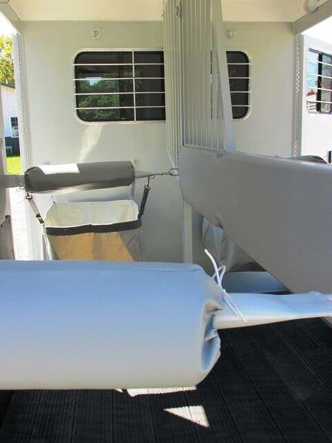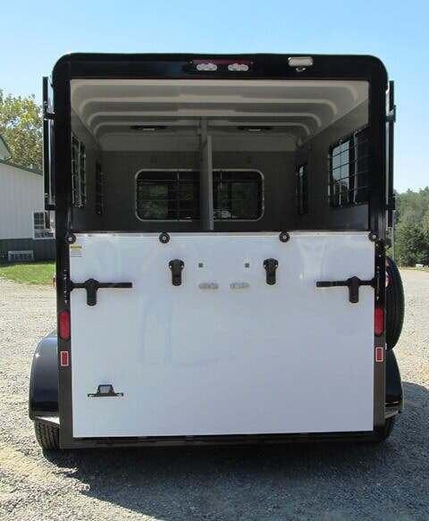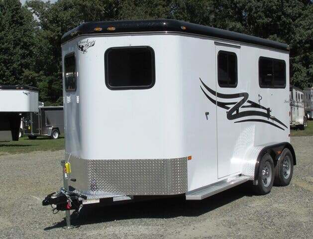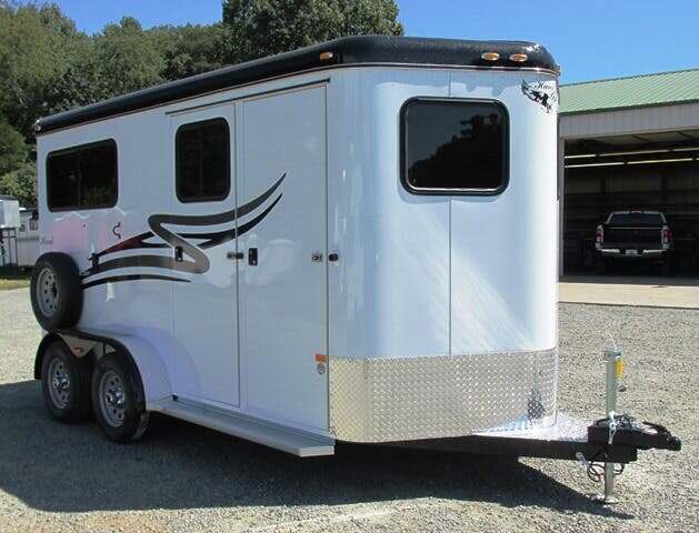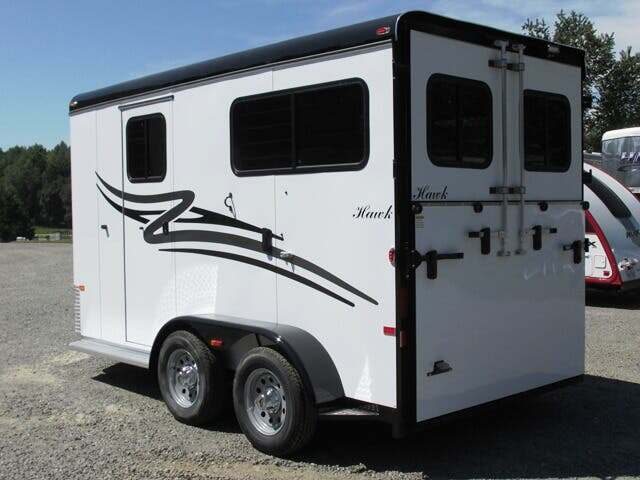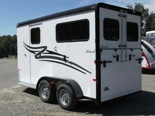 2026 Hawk 2H BP w/5’ Dress, 7’6”x6’8”, White, 10’ in HA, Shelby Flooring, Removable Center Post, Removable Tubular Head and Shoulder Dividers, 2-3500 Lb. Brake Axles, 15” Tires, Wood Floor w/Rubber Mats in Dress, Lined and Insulated Walls in HA & Dress, One Piece Fiberglass Roof, Diamond Plate on Nose and Fender Fronts, Rear Ramp w/Curtain Doors w/Windows in Curtains, 2 Escape Doors, 2 Saddle Racks, Bridle Racks, Brush Box, Running Board Steps, Padded Center Divider, Padded Butt & Breast Bars, 2 Roof Vents in HA, Interior and Exterior Tie Rings, Head Bumpers Above Rear Ramp Opening, One Dome Light in HA; One in Dress, Rear Loading Light, Porch Light at Dress, Rubber-Lined Side Walls, Square Feed Bags, Spare Tire & Wheel, 7-Year Warranty, GVWR 7000, Empty 3200, Carry 3800