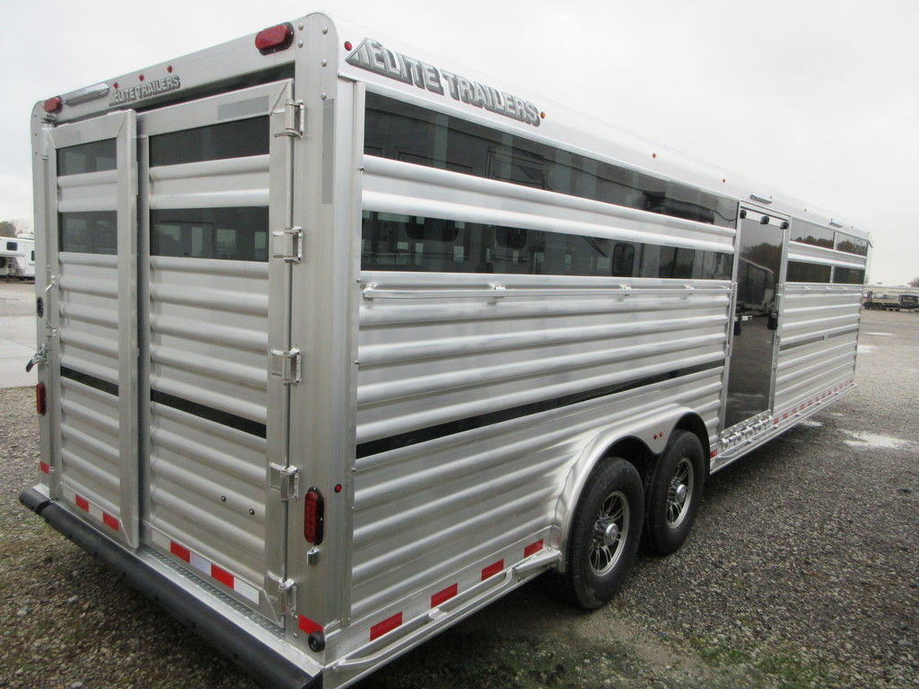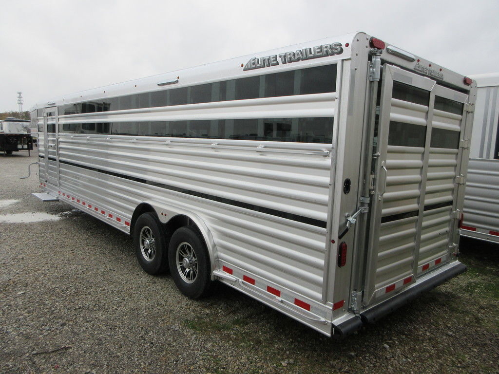 2026 Elite 8x28x6’6” Tall Stock, Front floating cut gate with 3/4 no step gate, rear floating cut gate with 3/4 no step gate, side ramp in front of axle, inside and outside tie rail high and low, roof vents, load lights, front 6’ makes a dirty tack, sealed walk out escape door, step at escape, gate over side ramp, 12V Battery for lighting, 14 ply Goodyear G614 radials, 8k axles, plexiglass, enclosed G/N Nose. Trades considered, financing available with approved credit. Main Trailer Sales, LLC 812-524-7986 www.maintrailersales.com 905 S. Commerce Drive Seymour, IN 47274. Stock#T0023407 2026 Elite 8x28x6’6” Tall Stock, Front floating cut gate with 3/4 no step gate, rear floating cut gate with 3/4 no step gate, side ramp in front of axle, inside and outside tie rail high and low, roof vents, load lights, front 6’ makes a dirty tack, sealed walk out escape door, step at escape, gate over side ramp, 12V Battery for lighting, 14 ply Goodyear G614 radials, 8k axles, plexiglass, enclosed G/N Nose. Trades considered, financing available with approved credit. Main Trailer Sales, LLC 812-524-7986 www.maintrailersales.com 905 S. Commerce Drive Seymour, IN 47274. Stock#T0023407