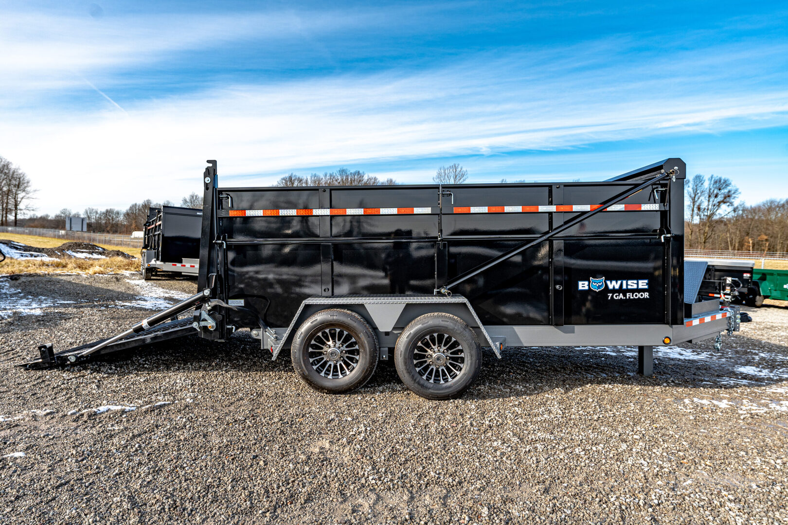 View Inventory: https://leonardtrailers.com/inventory/45289 Stock# 45289 New 2026 Bwise DUT14-15 Ultimate Dump Trailer The Ultimate Dump Trailers from BWise are engineered to be the best in class for your heavy duty hauling needs. Designed with hydraulic systems in place including hoist, jack, and ramp/gate - the Ultimate Dump Trailer models give you power and features to handle any job with ease. Our DU family of trailers are a ’must have’ for commercial landscape, hardscape and construction customers Model:DUT14-15 Warranty: 2yr- Structural  DUT15 – DUT14-15 Ultimate Dump Trailer General Color: Black / H-Tone Gray Frame Model: DUT14-15 Ultimate Dump Dimensions: 82” W x 14’ L GVWR: 15,400 lbs Frame & Structure Main Frame: 8” tube Floor: 7GA one-piece floor Sides: 12GA steel sides Coupler & Jack Coupler: 2-5/16” adjustable coupler Jack: Hydraulic jack Axles & Suspension Axles: (2) 7,000 lb SS tandem axles, electric brakes Tires & Wheels Tires: ST235/80R16E radial, black aluminum wheels Hydraulics & Battery Cylinder: Front-mounted telescopic 5” cylinder Battery: Group 27 deep cycle battery Battery Charger: Redarc inverter charger included Body & Gate Gate: Hydraulic double-acting gate Electronics & Controls Remote: Tuff wireless remote Accessories Tarp Kit: Spring-loaded tarp kit included Spare Tire: Included We offer outstanding financing options, accept trades, and can arrange nationwide NO HASSLE delivery! Inquire today for more information! (888) 333-6613 **We believe these specifications to be accurate. Any discrepancies are unintentional. Please verify information with a sales associate prior to purchase.** Stock Number:45289