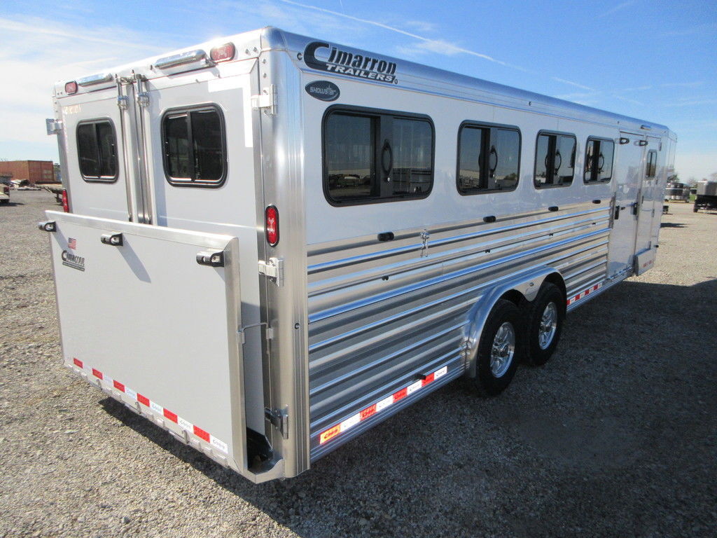 2026 Cimarron Showstar 10 pen, 25’ x 8’ x 6’4”, 2 7000lb Dexter Torsion Axles with electric brakes, Aluminum wheels, polished Stainless nose, 4’8” Tack with carpeted walls, Hooks, Airliner cargo track, 32” access door on Curb side, passthrough door to stock area, 20’ Stock area with 32” access door on street side, 10 adjustable pens with removable posts, feeder rails on pens, Insulated roof, Interior and Exterior LED lights, 8 pop up roof vents, 8 fold down windows and fold down lower air gaps. 48” side ramp, 50/50 Rear gates with fold down ramp. Trades considered, financing available with approved credit. Main Trailer Sales, LLC www.maintrailersales.com 812-524-7986 Stock#TC017723 2026 Cimarron Showstar 10 pen, 25’ x 8’ x 6’4”, 2 7000lb Dexter Torsion Axles with electric brakes, Aluminum wheels, polished Stainless nose, 4’8” Tack with carpeted walls, Hooks, Airliner cargo track, 32” access door on Curb side, passthrough door to stock area, 20’ Stock area with 32” access door on street side, 10 adjustable pens with removable posts, feeder rails on pens, Insulated roof, Interior and Exterior LED lights, 8 pop up roof vents, 8 fold down windows and fold down lower air gaps. 48” side ramp, 50/50 Rear gates with fold down ramp. Trades considered, financing available with approved credit. Main Trailer Sales, LLC www.maintrailersales.com 812-524-7986 Stock#TC017723