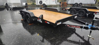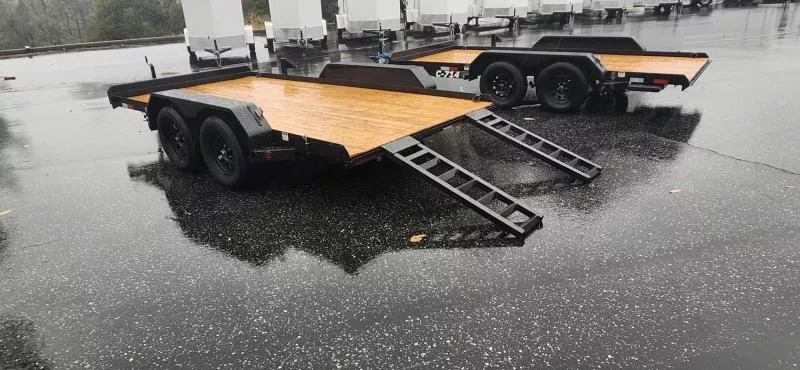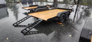 double axle, heavy-duty fenders, front bumper bar, stake pockets, d-rings, stow-away ramps,