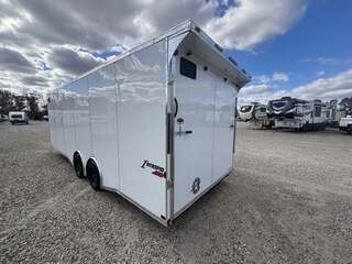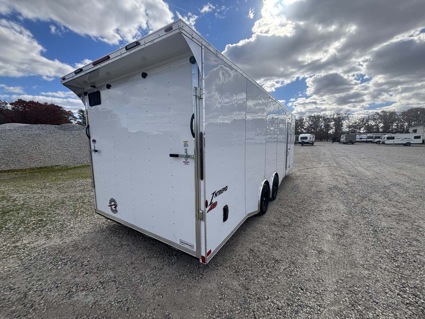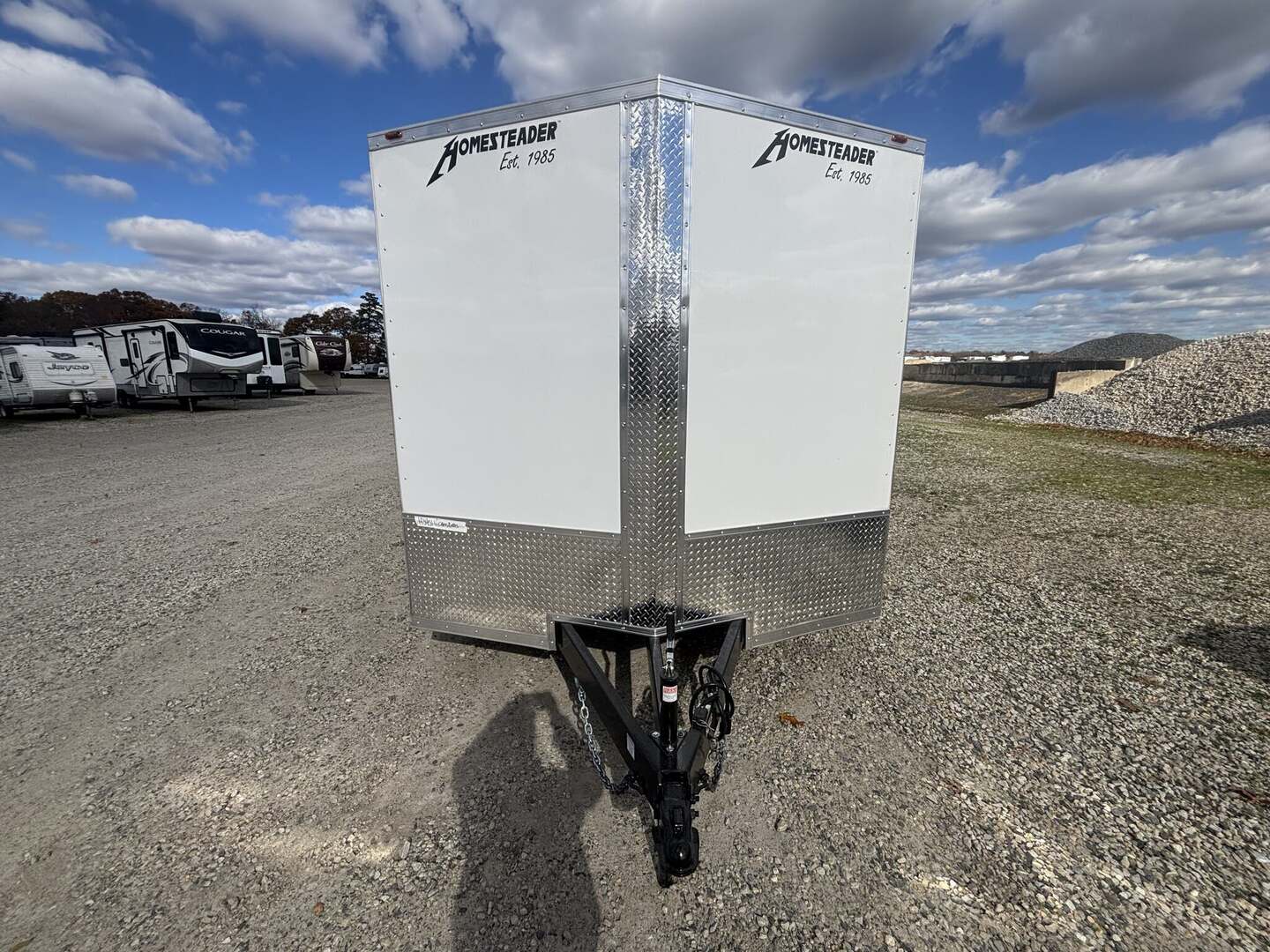 Homesteader Intrepid 2026 Cargo Trailer – Enclosed 2-Axle Hauler for RV Enthusiasts 5200-pound spread tandem axles 2/6 tubed steel framing  60” tongue with adjustable coupler, 7-foot-tall interior  rear spoiler with loading lights in it .080 polycore lining The 2026 Homesteader Intrepid cargo trailer is a fresh, in-stock option designed for versatility and durability. This new arrival delivers a rugged, weather-tight enclosure ready to support your RV lifestyle, mobile business, or event needs. With a spacious interior floorplan and a sturdy aluminum frame paired with a steel substructure, the Intrepid combines practicality with reliable performance for long road trips or on-site operations. Packaged as a bumper-pull trailer, it’s easy to tow behind a wide range of vehicles while offering ample interior space for customization. Key specifications at a glance Brand: Homesteader Model: Intrepid Year: 2026 Type: Cargo trailer / enclosed trailer Classification: Cargo/Concession trailer Stock #: 5059 Condition: In stock, New arrival Exterior color: White Construction: Aluminum with steel frame Flooring: Wood Axles: 2 Hitch: Bumper pull Floorplan: 8 ft 6 in wide × 24 ft interior length (IH) Overall length: 28 ft 6 in Width: 8 ft 5 in Height: 7 ft Enclosure: Enclosed Benefits for RV lovers and mobile entrepreneurs Versatile space that can be outfitted for gear storage, a mobile concession, or a custom RV conversion Compact yet spacious floorplan that balances towability with usable cargo area Durable construction designed to withstand road travel and varying weather Ready-to-customize interior with a wood floor offering a solid foundation New arrival and ready for quick delivery to support your schedule Why choose the Intrepid for your next journey Trusted Homesteader brand with a solid reputation for durable cargo trailers Modern 2026 build that pairs reliability with ease of ownership Enclosed enclosure protects cargo from the elements, dust, and debris Compact, tow-friendly design ideal for travel trailer enthusiasts and active vendors Availability and how to buy Stock status: In stock and ready for delivery Stock number: 5059 Ideal for immediate purchase to support your travel or business needs Contact us to schedule a viewing, request more photos, or reserve this trailer