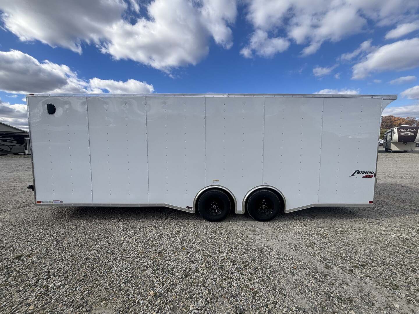 Homesteader Intrepid 2026 Cargo Trailer – Enclosed 2-Axle Hauler for RV Enthusiasts 5200-pound spread tandem axles 2/6 tubed steel framing  60” tongue with adjustable coupler, 7-foot-tall interior  rear spoiler with loading lights in it .080 polycore lining The 2026 Homesteader Intrepid cargo trailer is a fresh, in-stock option designed for versatility and durability. This new arrival delivers a rugged, weather-tight enclosure ready to support your RV lifestyle, mobile business, or event needs. With a spacious interior floorplan and a sturdy aluminum frame paired with a steel substructure, the Intrepid combines practicality with reliable performance for long road trips or on-site operations. Packaged as a bumper-pull trailer, it’s easy to tow behind a wide range of vehicles while offering ample interior space for customization. Key specifications at a glance Brand: Homesteader Model: Intrepid Year: 2026 Type: Cargo trailer / enclosed trailer Classification: Cargo/Concession trailer Stock #: 5059 Condition: In stock, New arrival Exterior color: White Construction: Aluminum with steel frame Flooring: Wood Axles: 2 Hitch: Bumper pull Floorplan: 8 ft 6 in wide × 24 ft interior length (IH) Overall length: 28 ft 6 in Width: 8 ft 5 in Height: 7 ft Enclosure: Enclosed Benefits for RV lovers and mobile entrepreneurs Versatile space that can be outfitted for gear storage, a mobile concession, or a custom RV conversion Compact yet spacious floorplan that balances towability with usable cargo area Durable construction designed to withstand road travel and varying weather Ready-to-customize interior with a wood floor offering a solid foundation New arrival and ready for quick delivery to support your schedule Why choose the Intrepid for your next journey Trusted Homesteader brand with a solid reputation for durable cargo trailers Modern 2026 build that pairs reliability with ease of ownership Enclosed enclosure protects cargo from the elements, dust, and debris Compact, tow-friendly design ideal for travel trailer enthusiasts and active vendors Availability and how to buy Stock status: In stock and ready for delivery Stock number: 5059 Ideal for immediate purchase to support your travel or business needs Contact us to schedule a viewing, request more photos, or reserve this trailer
