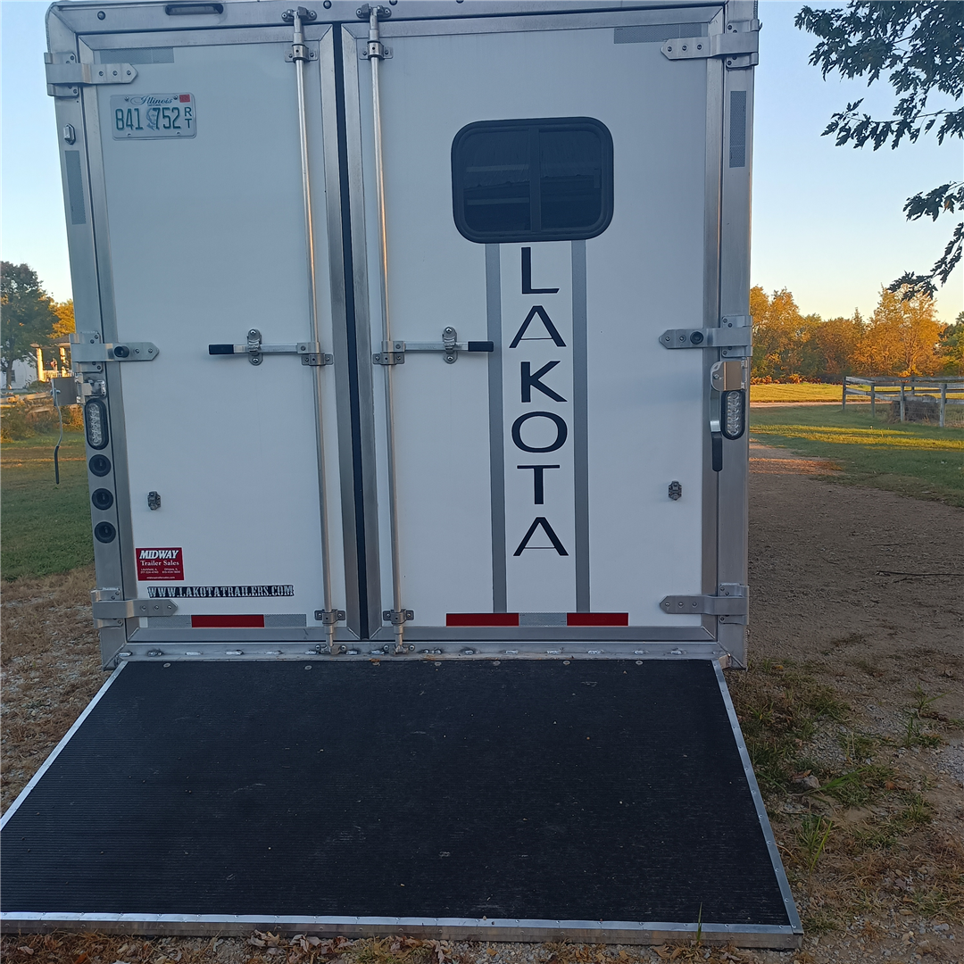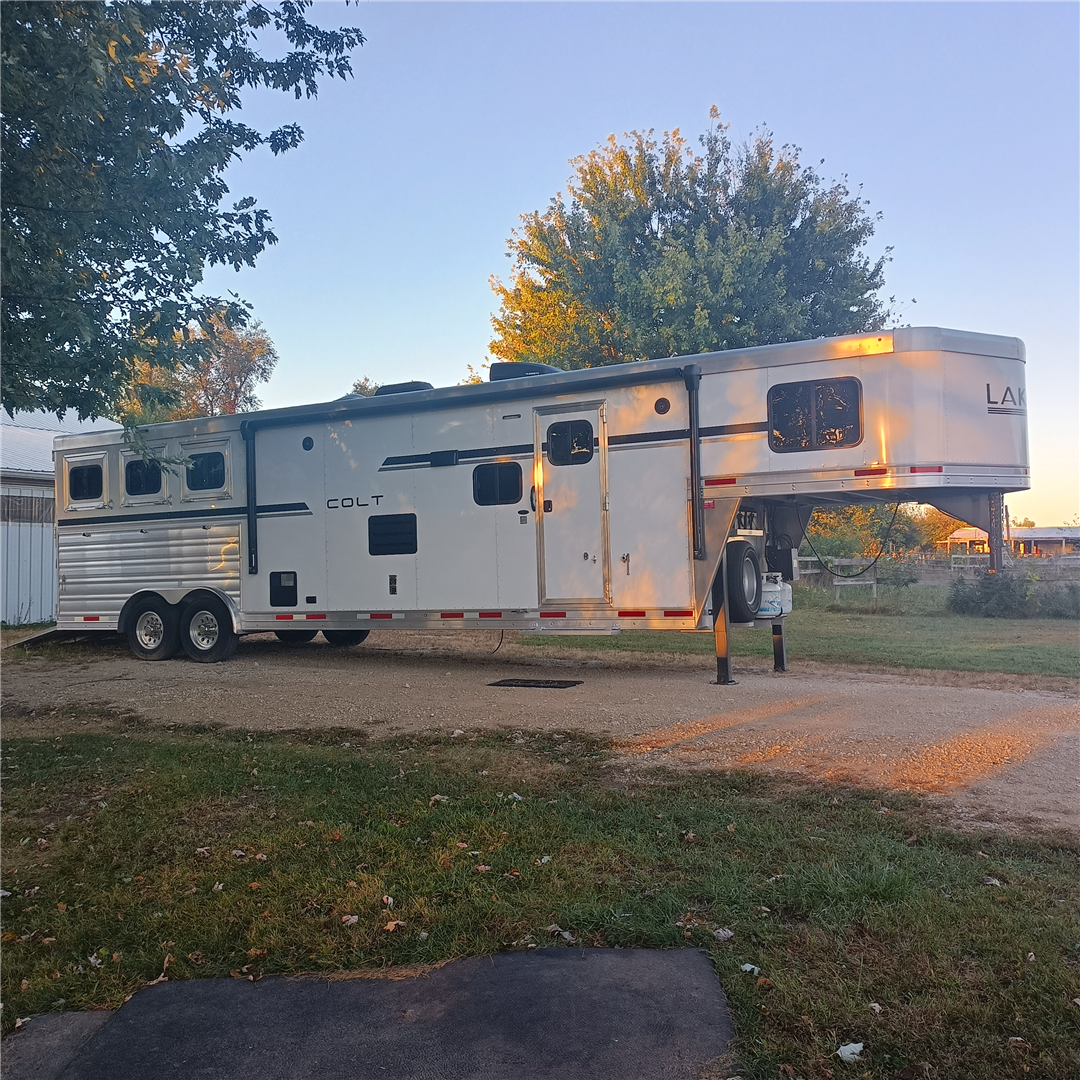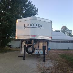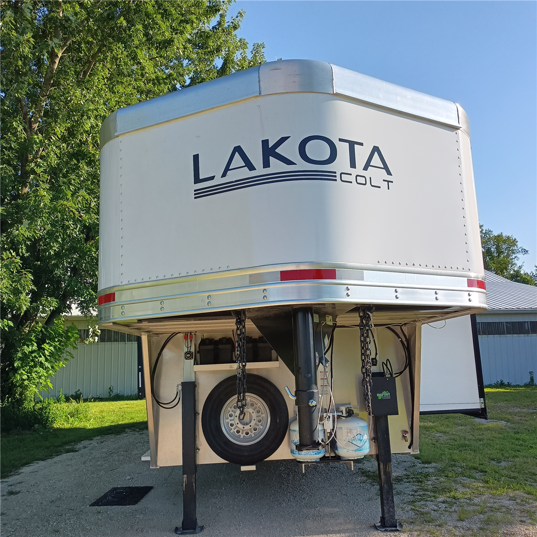 Lakota Colt 3 slant horse full living quarters 5th wheel hitch. Hydraulic electric jack with all the bells and whistles! Big ramp. Like Brand new! Excellent condition! Sleeps 6. Slide out, pull out couch and full bed. Shower/toilet . Lots of space for storage inside and out. Length 38 feet. CD player, good size refrigerator, stove, sink and electric awning. It is in covered storage. Call 815 566 5686. Price $72,000