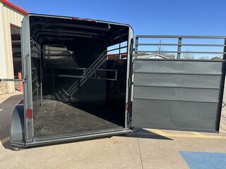 12’ x 6’ (Width) x 6’ 6 in (Height) 2 Horse Slant Load Trailer 2 x 3,500 lb. Torsion Axles (Upgraded to 6 Lug) Brakes on Rear Axle Slant Dressing Room 14 in x 21 in Window in Dressing Room RV Latch on Door 2 in Bulldog Coupler 1 Divider 1 Piece Rear Gate 54 in Solid Sides / 18 in Air Gap Full Rear Gate 2K Top Wind Jack 2 Removable Saddle Racks Escape Door ST 235 80 R 16 in Super Tires Mats on Floor Including Dressing Room 2 Dome Lights Spare Tire Mount (Mount Only) Smooth Fenders Empty Weight: 2,420 lbs. GVWR: 7,000 lbs. Carrying Capacity: 4,580 lbs.