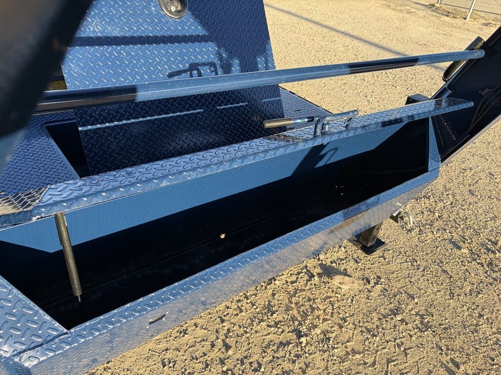 Gooseneck2 - 7K Lippert Electric Brake Auto Adjust Oil Bath Torsion AxlesST235/80R16 Tires (10 ply) w/Black Mod Wheels10ply SpareWeld on Spare Tire Mount2-5/16” Adjustable GN Coupler (30K)Neckboss 10” Engineered I-Beam Tongue3/8” Grade 70 Safety Chain w/Clevis Hook2 - Side Wind Spring Loaded Drop Leg Jack (12K)Mega Lockable ToolboxIn Deck Storage BoxStandard Stake PocketsPipe Spools3/16” Thick Drive Over Fenders8” I-Beam Frame3” Channel 16” Spacing CrossmembersRub RailGravity TiltAll-Weather Wiring Harness (7-Way RV)DOT Approved LED LightsPine Lumber FlooringPowdercoat Navy Blue