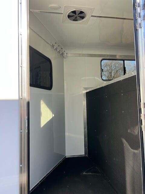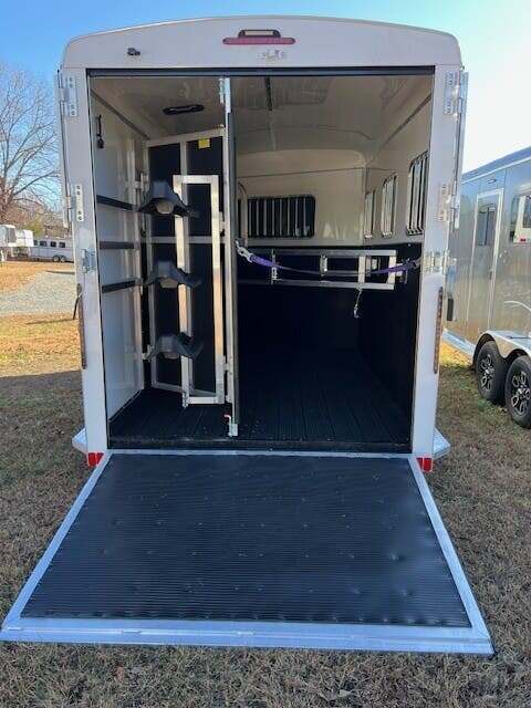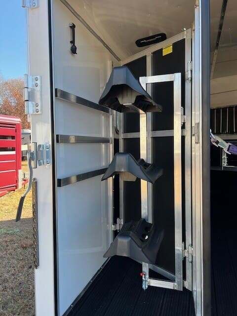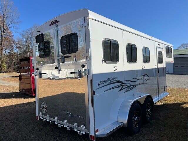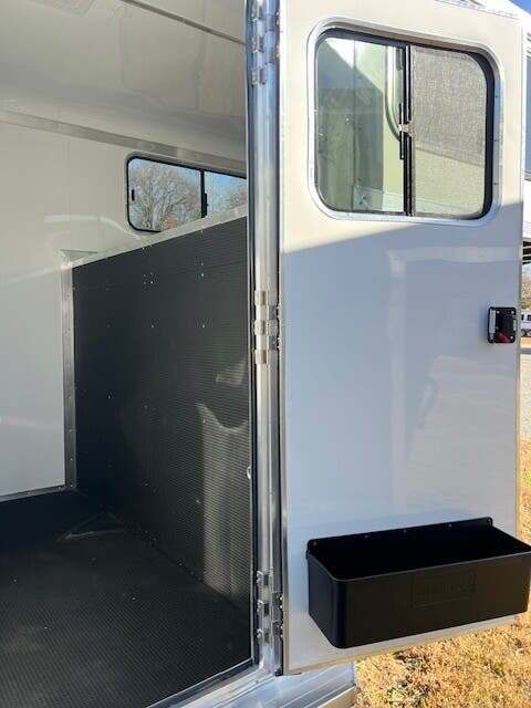 2026 Homesteader 3H GN Slant w/Dress 7’8”x7’, White, Rear Ramp w/Curtain Doors w/Windows in Curtains, Insulated Roof and Walls, Shelby Flooring in HA, Washable Nudo Flooring in Dress, Roof Vent w/Cover in Dress, All Aluminum Roof, Escape Door at First Horse, Drop Down Windows at Each Horse Head, 1’9” SW in Dress, Walk Through Door into HA w/Window, Rubber Lined Walls, Collapsible & Removable Rear Tack, 3 Stack Saddle Rack, Bridle Rack, Blanket Bar, Brush Box, Dome Lights in HA & Dress, Loading Light Over Rear Ramp, Spare Tire, GVWR 9950, Empty 5649, Carry 4301
