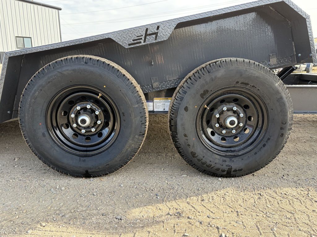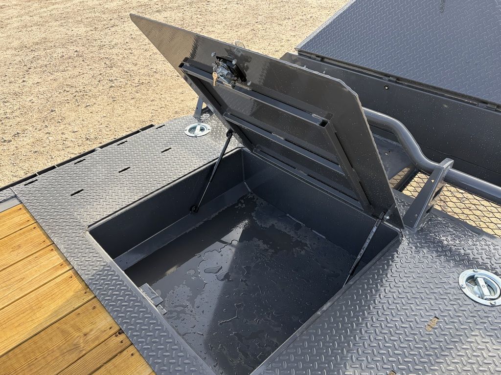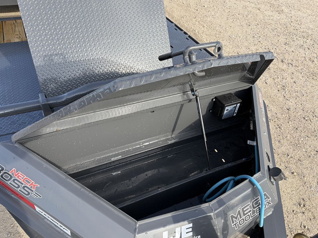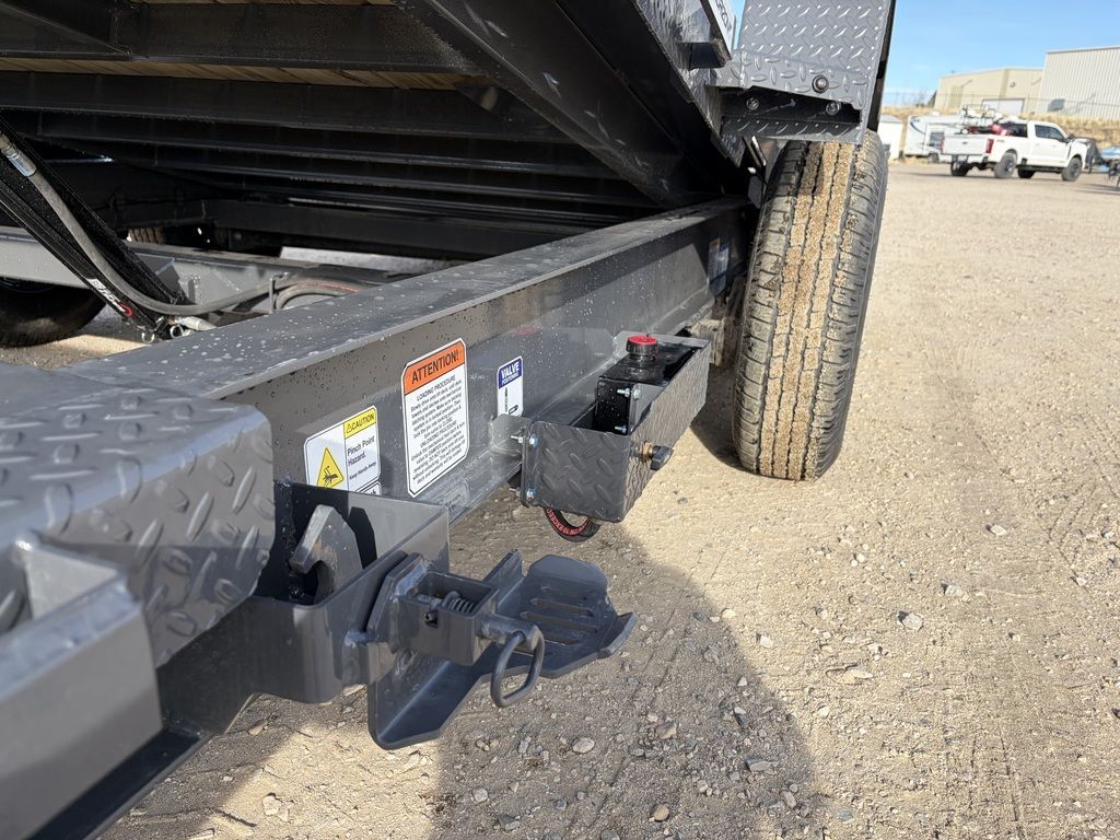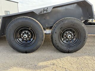 Bumper Pull2 - 7K Lippert Electric Brake Auto Adjust Oil Bath Torsion AxlesST235/80R16 Tires (10 ply) w/Black Mod WheelsWeld on Spare Tire Mount2-5/16” Adjustable BP Coupler (17K)Neckboss 8” Engineered I-Beam Tongue3/8” Grade 70 Safety Chain w/Clevis Hook1 - Side Wind Spring Loaded Drop Leg Jack (12K)Mega Lockable ToolboxIn Deck Storage BoxStandard Stake PocketsPipe Spools12ga Removable Diamond Plate Steel Fenders8” I-Beam Frame3” Channel 16” Spacing CrossmembersRub RailGravity TiltAll-Weather Wiring Harness (7-Way RV)DOT Approved LED LightsPine Lumber FlooringPowdercoat Ash Gray