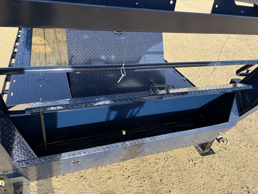 Gooseneck2 - 8K Lippert Electric Brake Auto Adjust Oil Bath Torsion AxlesST235/85R16 Tires (14 ply) w/Black Mod Wheels14ply SpareWeld on Spare Tire Mount2-5/16” Adjustable GN Coupler (30K)Neckboss 10” Engineered I-Beam Tongue3/8” Grade 70 Safety Chain w/Clevis Hook2 - Side Wind Spring Loaded Drop Leg Jack (12K)Mega Lockable ToolboxIn Deck Storage BoxStandard Stake PocketsPipe Spools12ga Removable Diamond Plate Steel Fenders8” I-Beam Frame3” Channel 16” Spacing CrossmembersRub RailGravity TiltAll-Weather Wiring Harness (7-Way RV)DOT Approved LED LightsPine Lumber FlooringPowdercoat Navy Blue