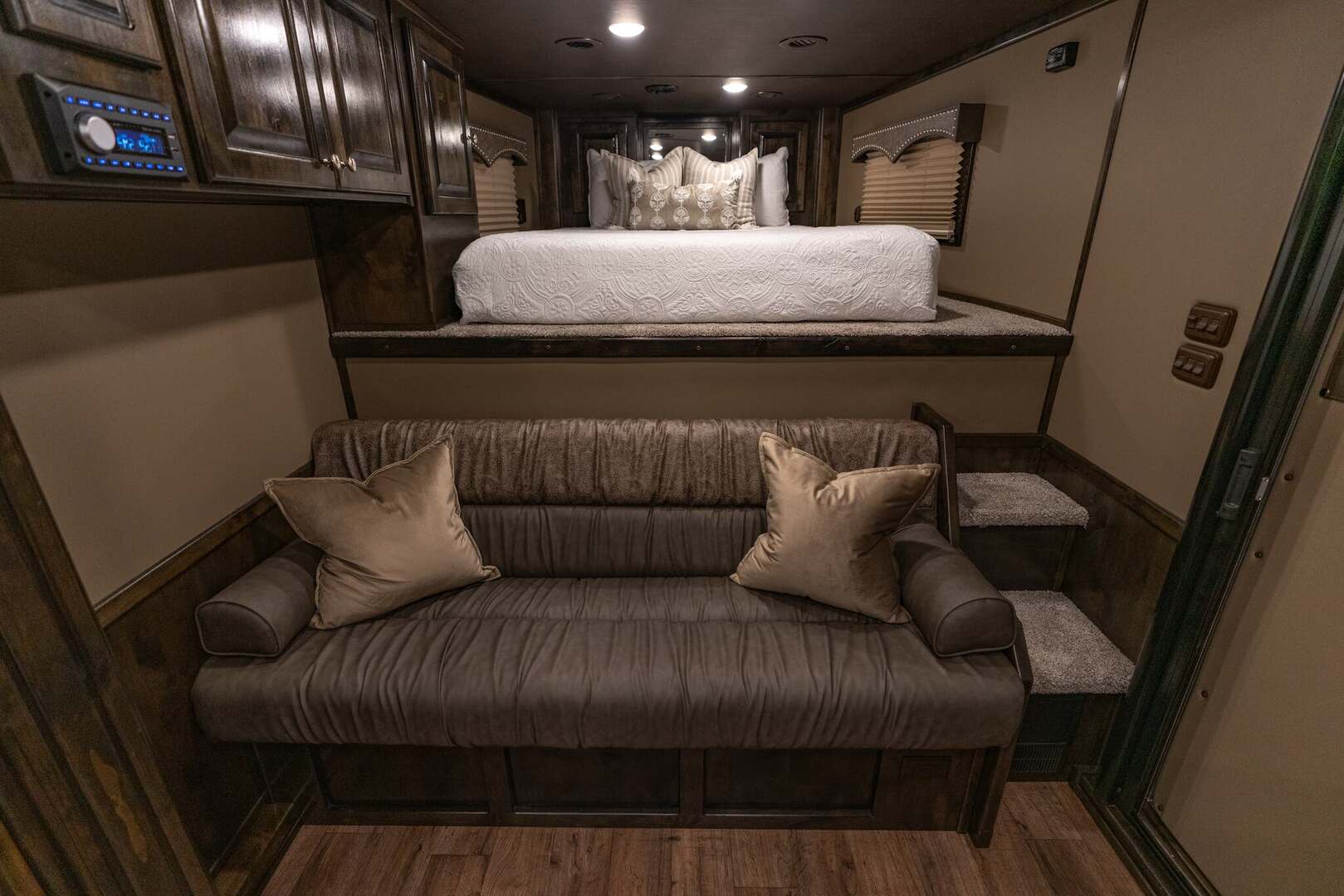 The Conversion: In the world of living quarter horse trailers, the name that means outstanding quality is Outlaw Conversions. Since 1996, Outlaw Conversions has produced the premier custom interior in the industry. Their expertise and attention to detail is evident in every square inch. Outlaw Conversions also places great emphasis on after-the-sale customer service. A customer who invests in an Outlaw interior is provided exceptional service. Their number one goal is customer satisfaction.