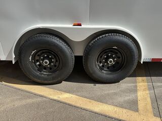 8’ x 20’ CG V Nose ALL STEEL Cargo Trailer 2 x 7,000 lb. EZ Lube Torsion Brake Axles 6’ 6 in. Interior Height STEEL SIDING Interior Spare Tire Mount 7 Way Sealed Wiring Harness All LED Lights 2 5/16 in. Adjustable Coupler Smooth Steel Fenders w/ Fender Steps 7K Jack Set Back ST 235 80 R 16 in. (Radials) Black Mod Wheels Double Rear Doors Full Side Door with handle Lock System on Curb Side 24 in ATP Front Stone Guard 2 in. x 8 in. Wood Floor Empty Weight 5,800 lbs. GVWR 14,000 lbs. Carrying Capacity 8,200 lbs.