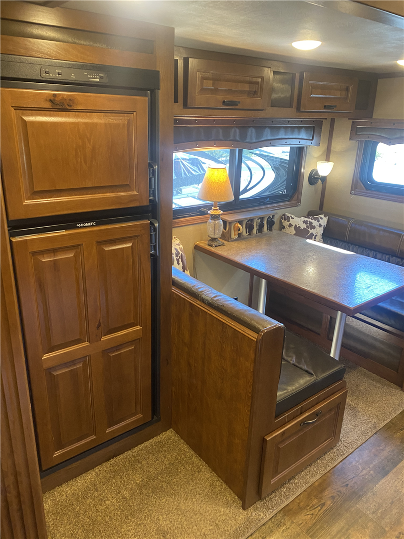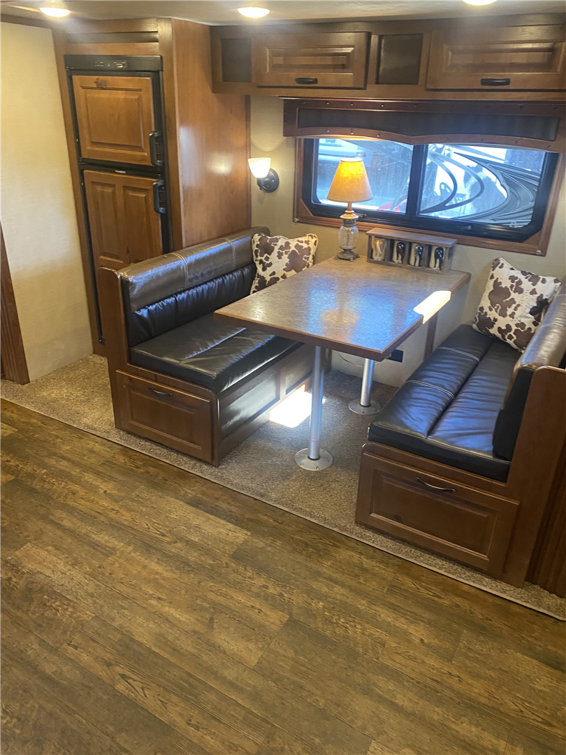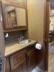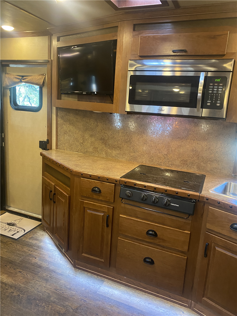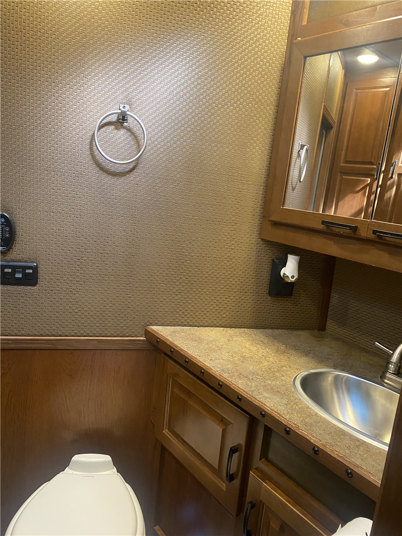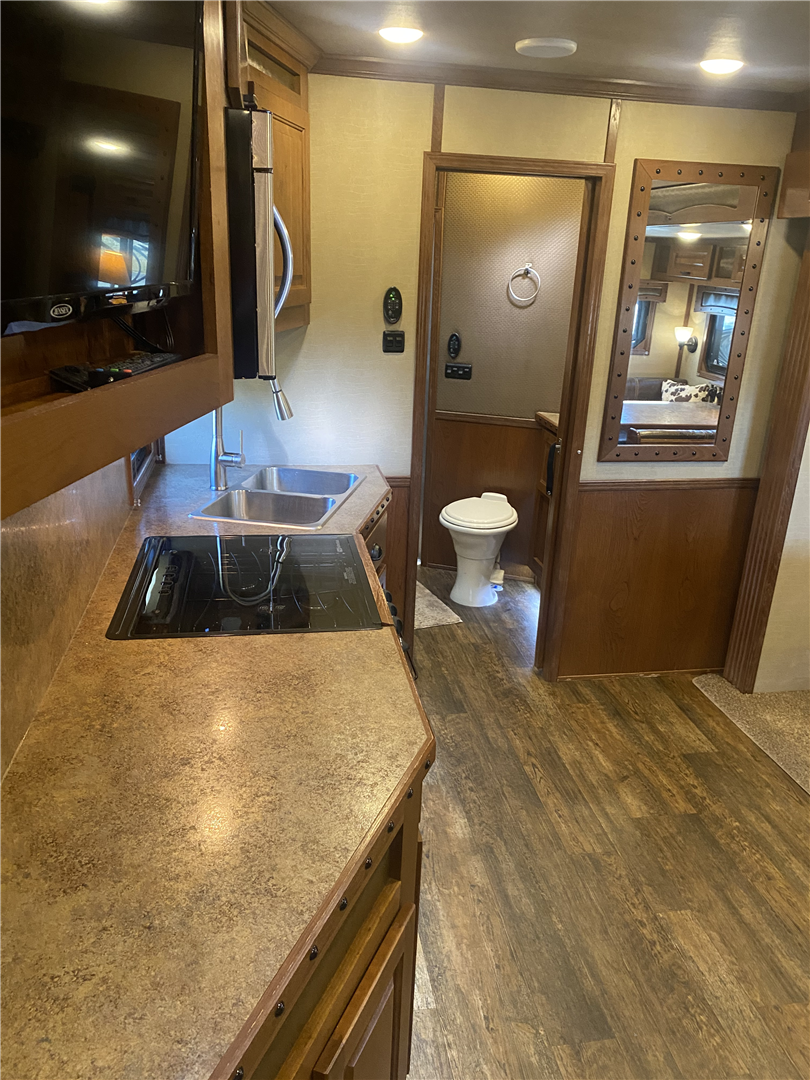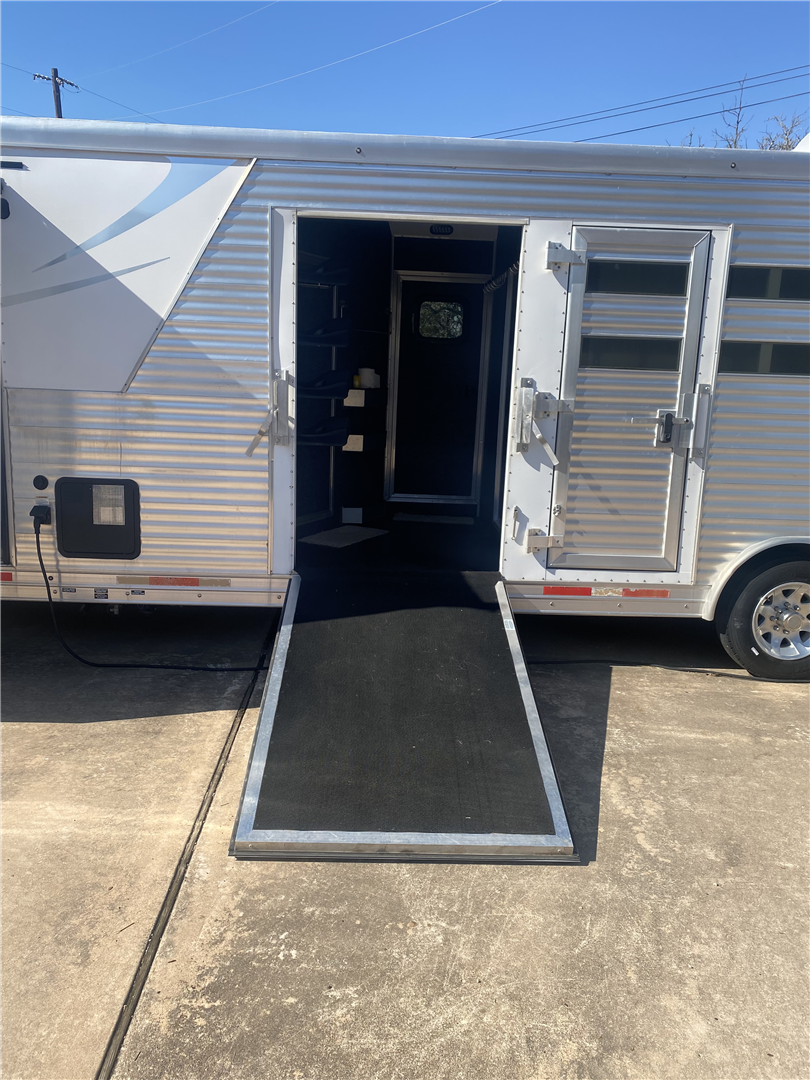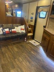 Purchased new, excellent condition , self contained with Onan Propane Generator loaded with high end quality details ,was used to transport antique cars / golf cart. Upgraded Queen mattress above nose of trailer , additional sleeping ,sofa flips down to make bed, dinette converts to bed area . Porcelain toilet , large tall shower .